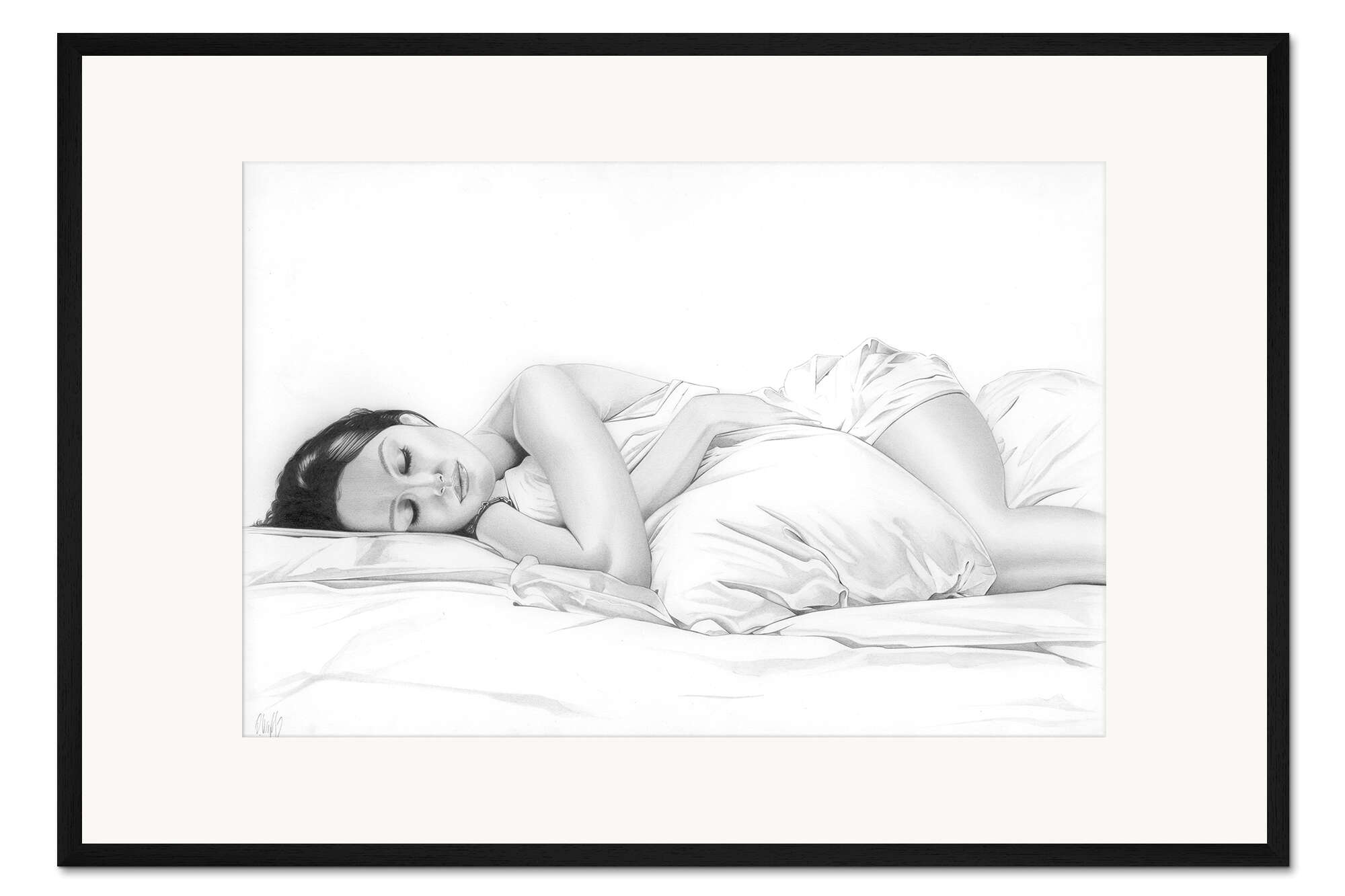 Posterlounge   Wandbilder   Querformat   Daniel Kiessler   Gerahmter Kunstdruck Sonntagmorgen, Bleistiftporträt