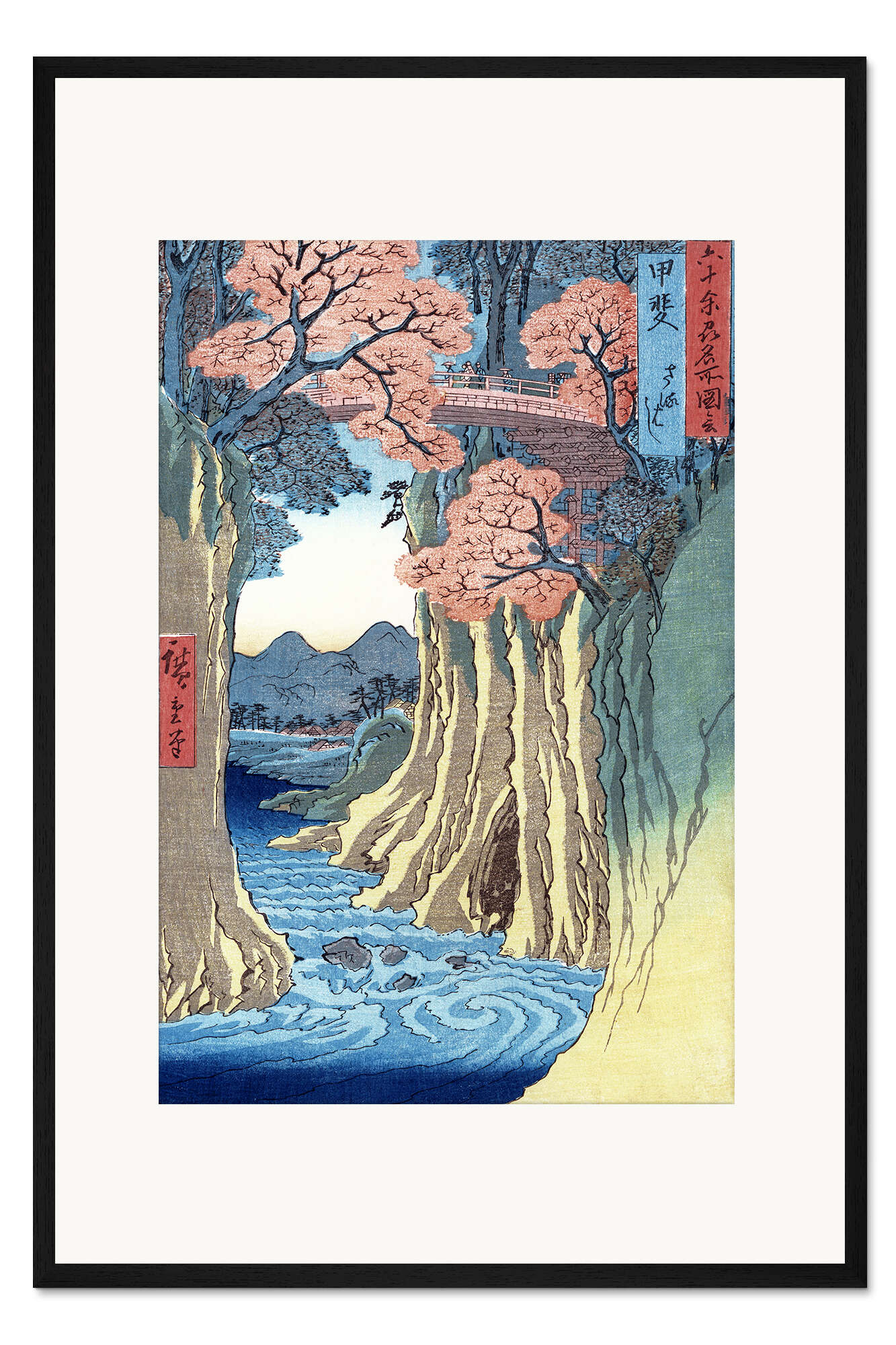 Posterlounge   Wandbilder   Blau   Utagawa Hiroshige   Gerahmter Kunstdruck Die Affenbrücke in der Provinz Kai