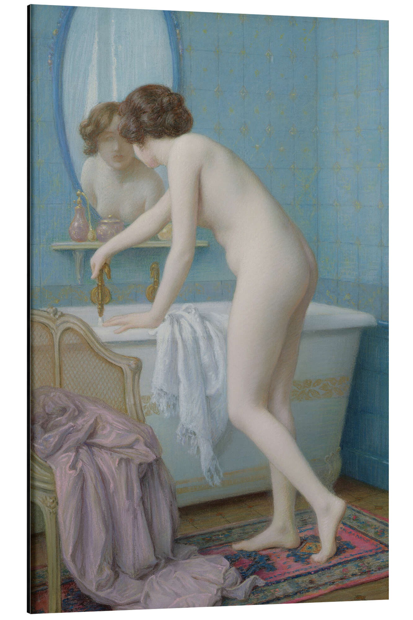 Posterlounge   Wandbilder   Blau   Jules Scalbert   Magnettafel Junge Frau lässt sich ein Bad ein