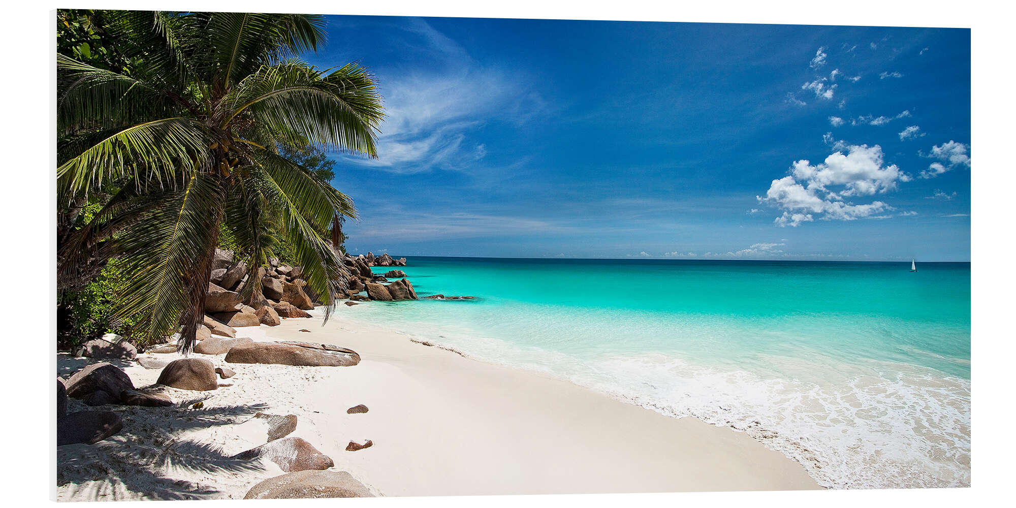 Hartschaumbild Paradisischer Strand auf den Seychellen