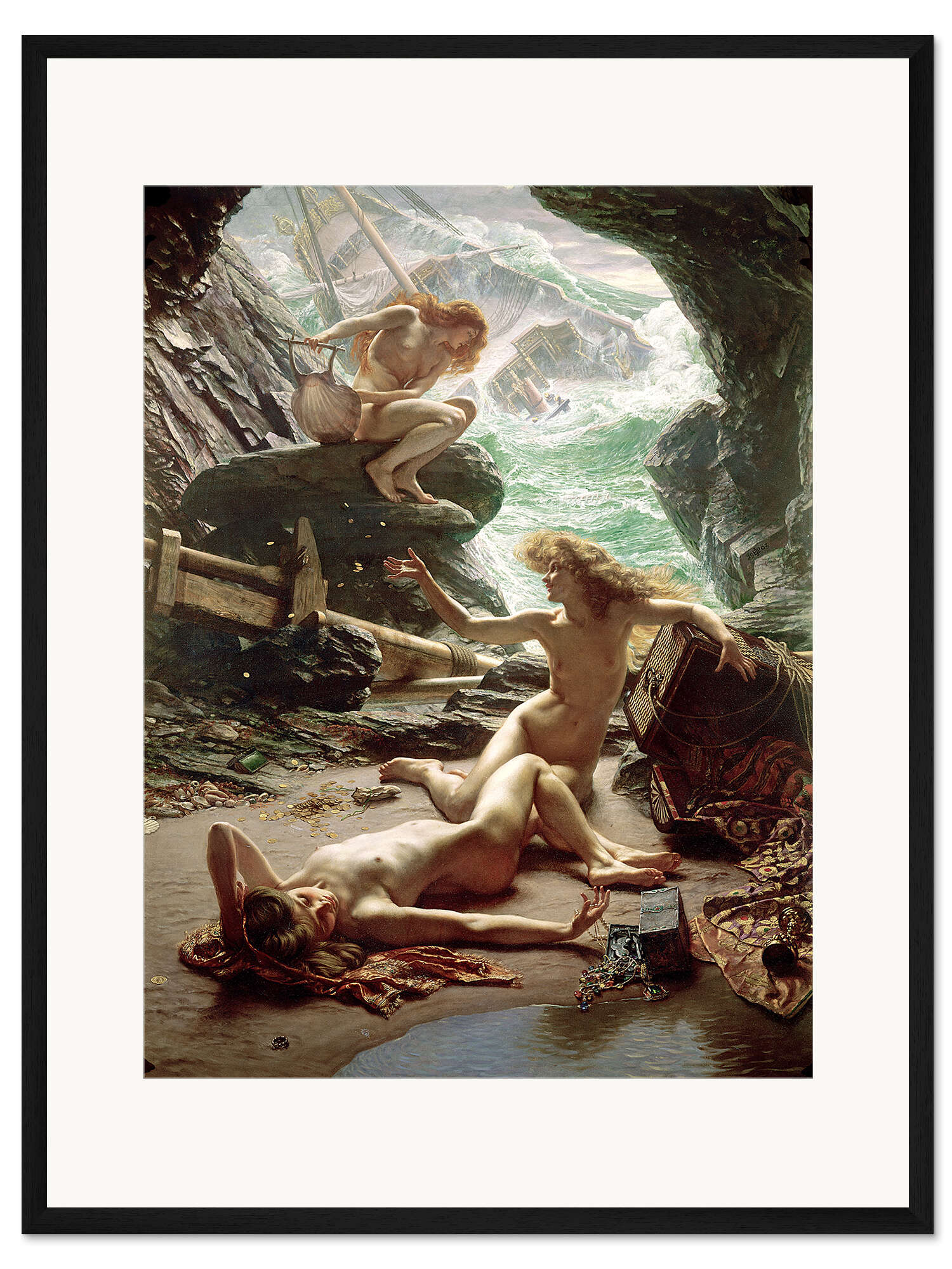 Posterlounge   Wandbilder   Hochformat   Sir Edward John Poynter   Gerahmter Kunstdruck Die Höhle des Sturms, Nymphen