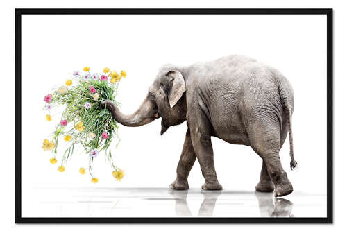 Posterlounge   Wandbilder   Querformat   Werner Dreblow   Gerahmter Kunstdruck Elefant mit Blumen