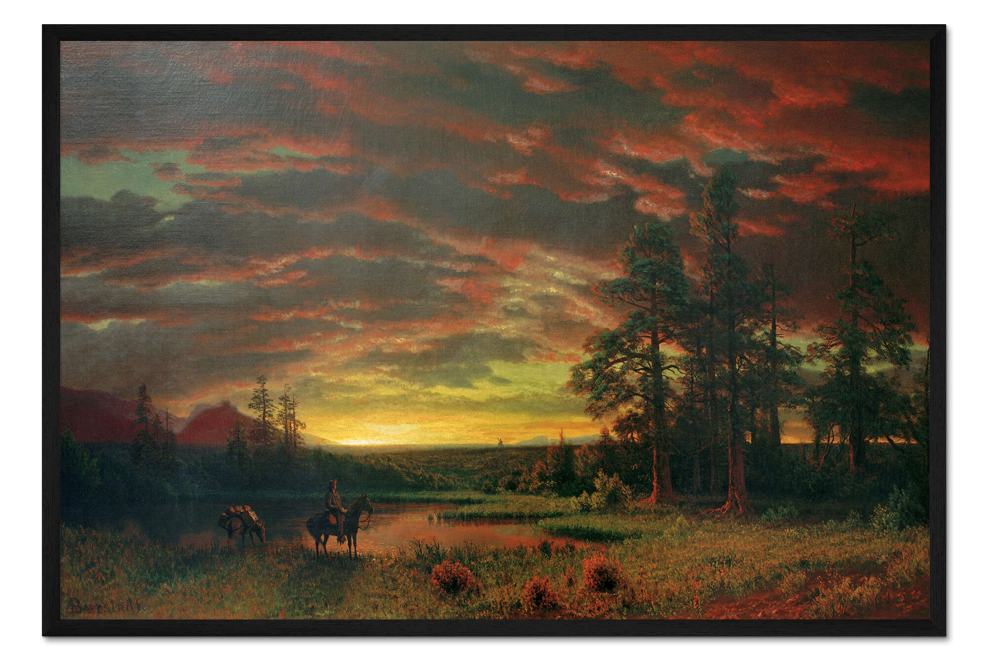 Posterlounge   Wandbilder   Querformat   Albert Bierstadt   Gerahmter Kunstdruck Abend in der Prärie
