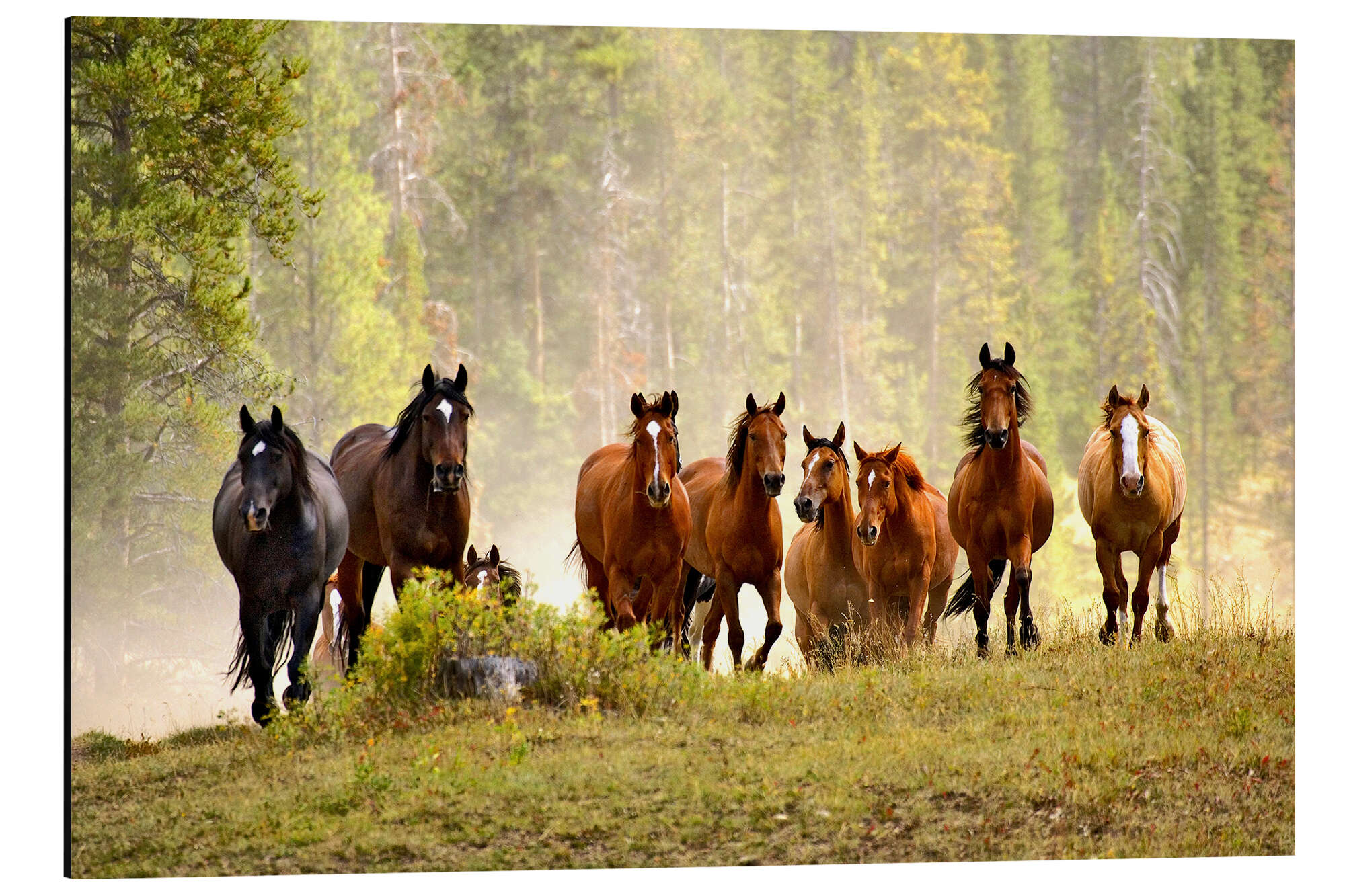 Posterlounge   Wandbilder   Querformat   Adam Jones   Magnettafel Pferde auf einer Waldlichtung