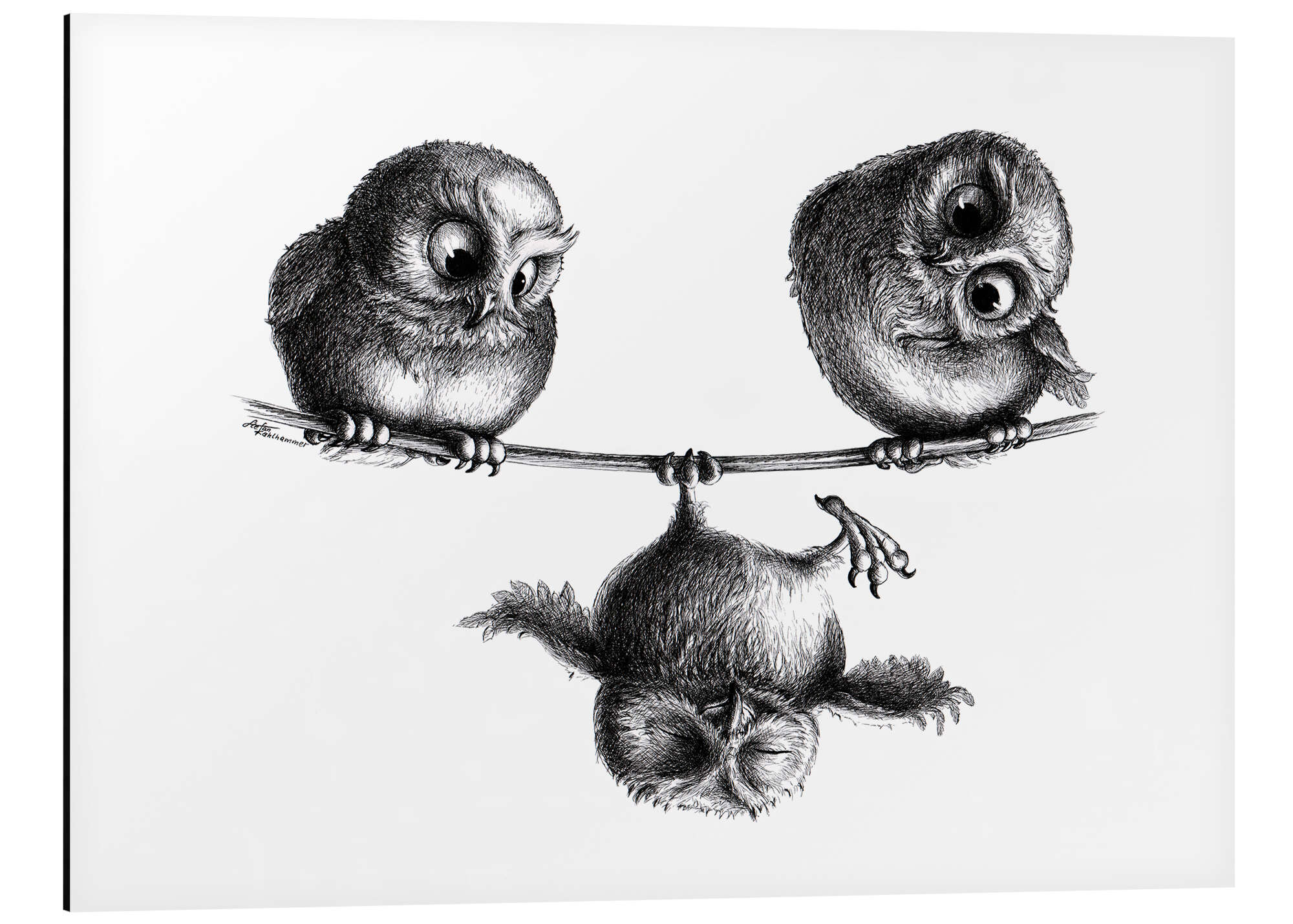 Posterlounge   Wandbilder   Querformat   Stefan Kahlhammer   Magnettafel Drei Eulen - Hochseilakt