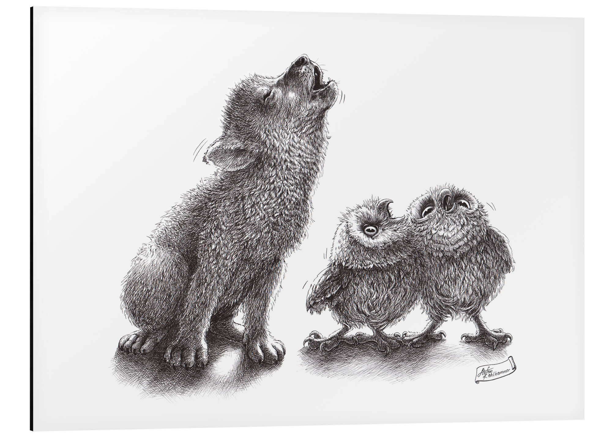 heulender Wolf trifft heulende Eulen von Stefan Kahlhammer
