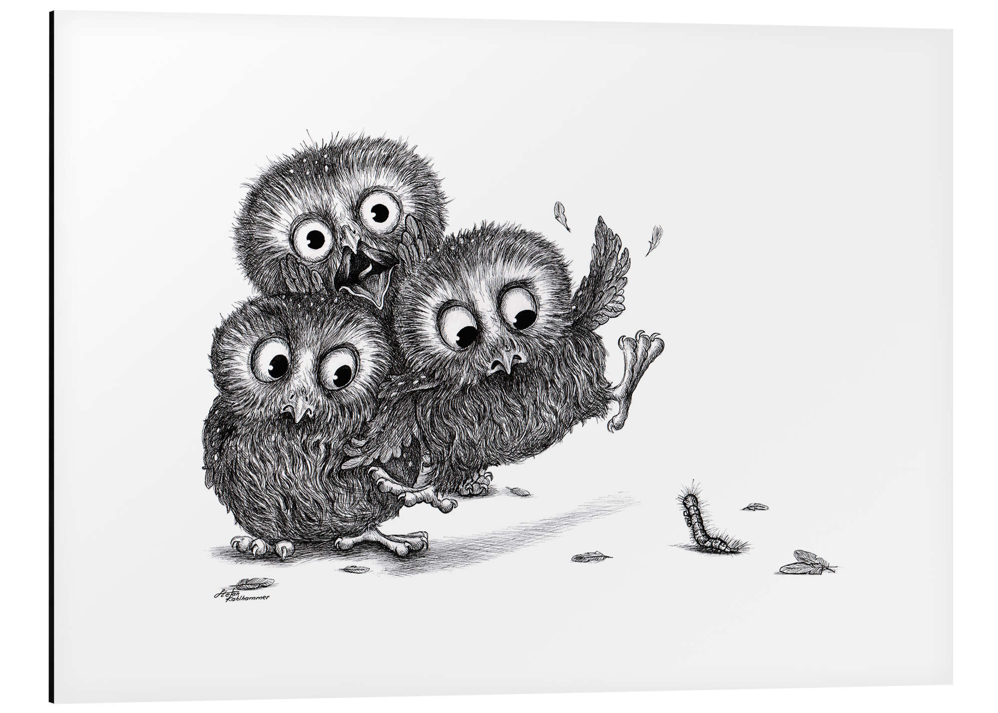 Posterlounge   Wandbilder   Querformat   Stefan Kahlhammer   Magnettafel Hilfe, drei Eulen und ein Monster