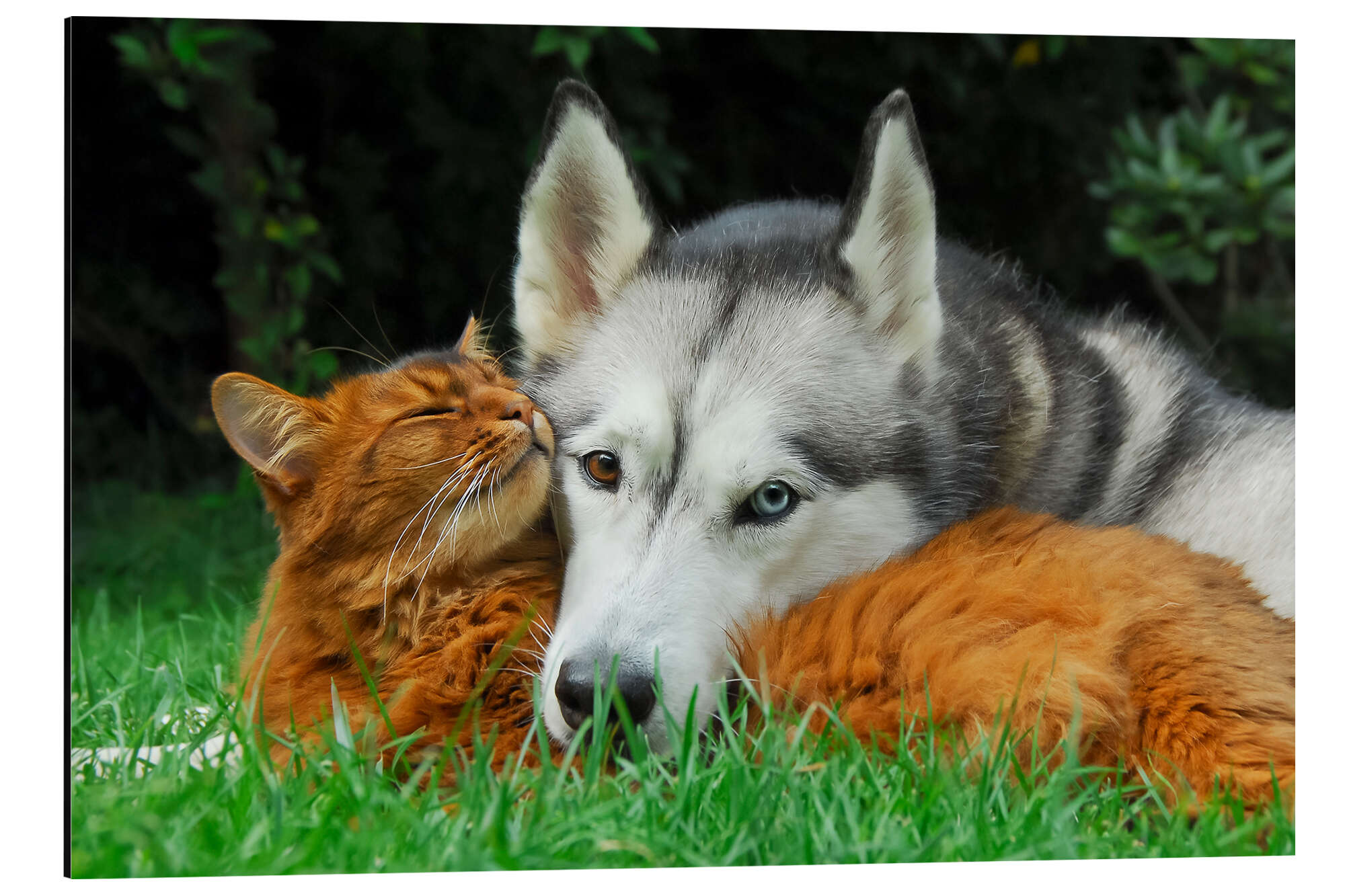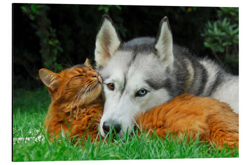 Posterlounge   Wandbilder   Fotografie   Katho Menden   Magnettafel Somali Katze und Siberian Husky kuscheln