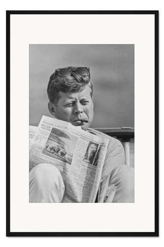 Posterlounge   Wandbilder   Schwarz-Weiß   John Parrot   Gerahmter Kunstdruck John F. Kennedy mit Zeitung