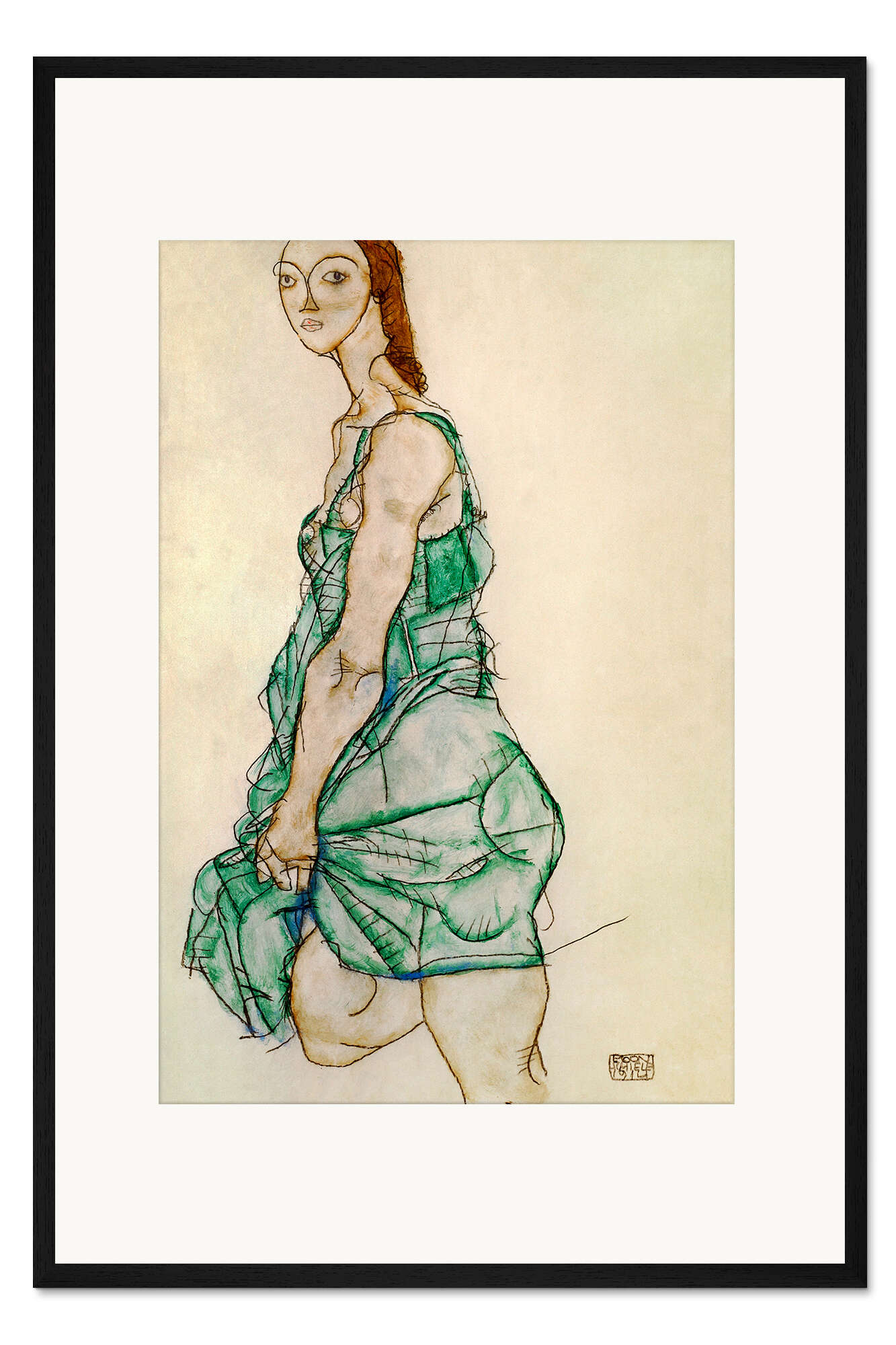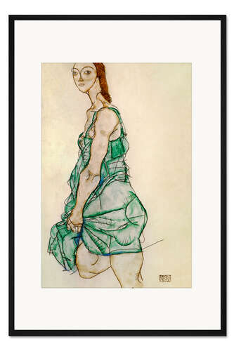 Posterlounge   Wandbilder   Beige   Egon Schiele   Gerahmter Kunstdruck Stehende Frau in grünem Hemd