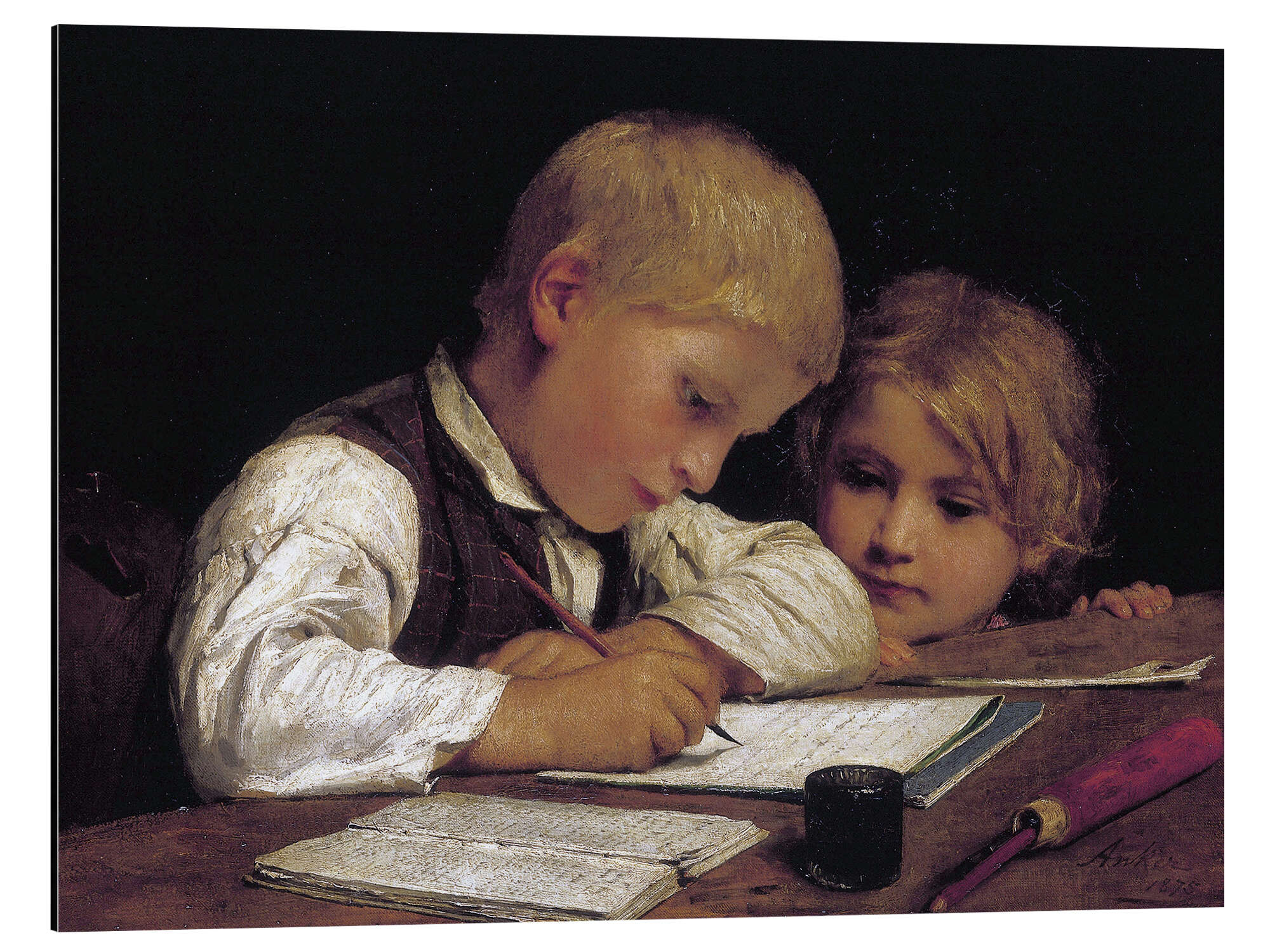 Magnettafel Schreibender Junge mit Schwester