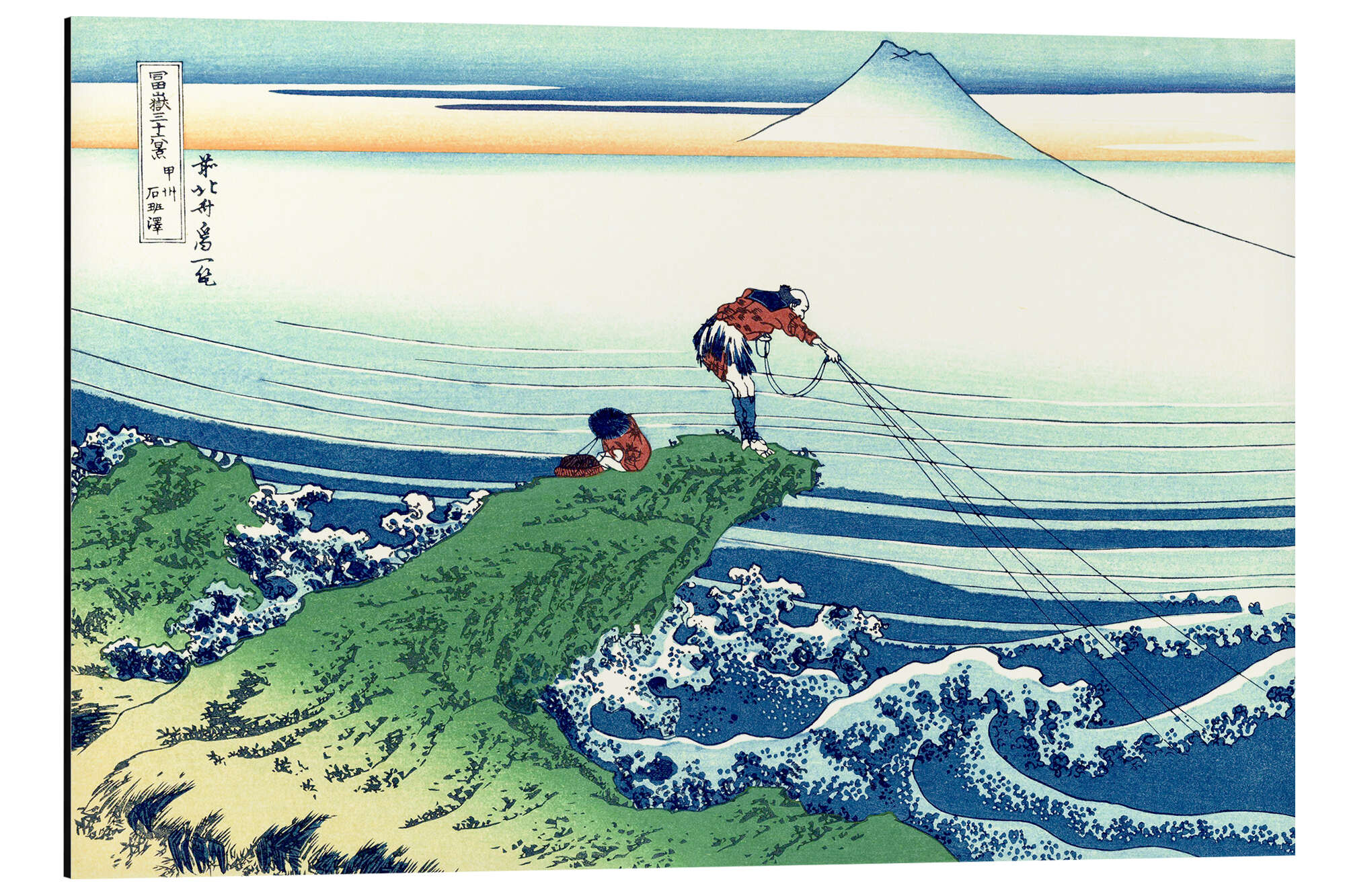 Magnettafel Ein Fischer steht auf einem Fels am Kajikazawa in der Provinz Kai