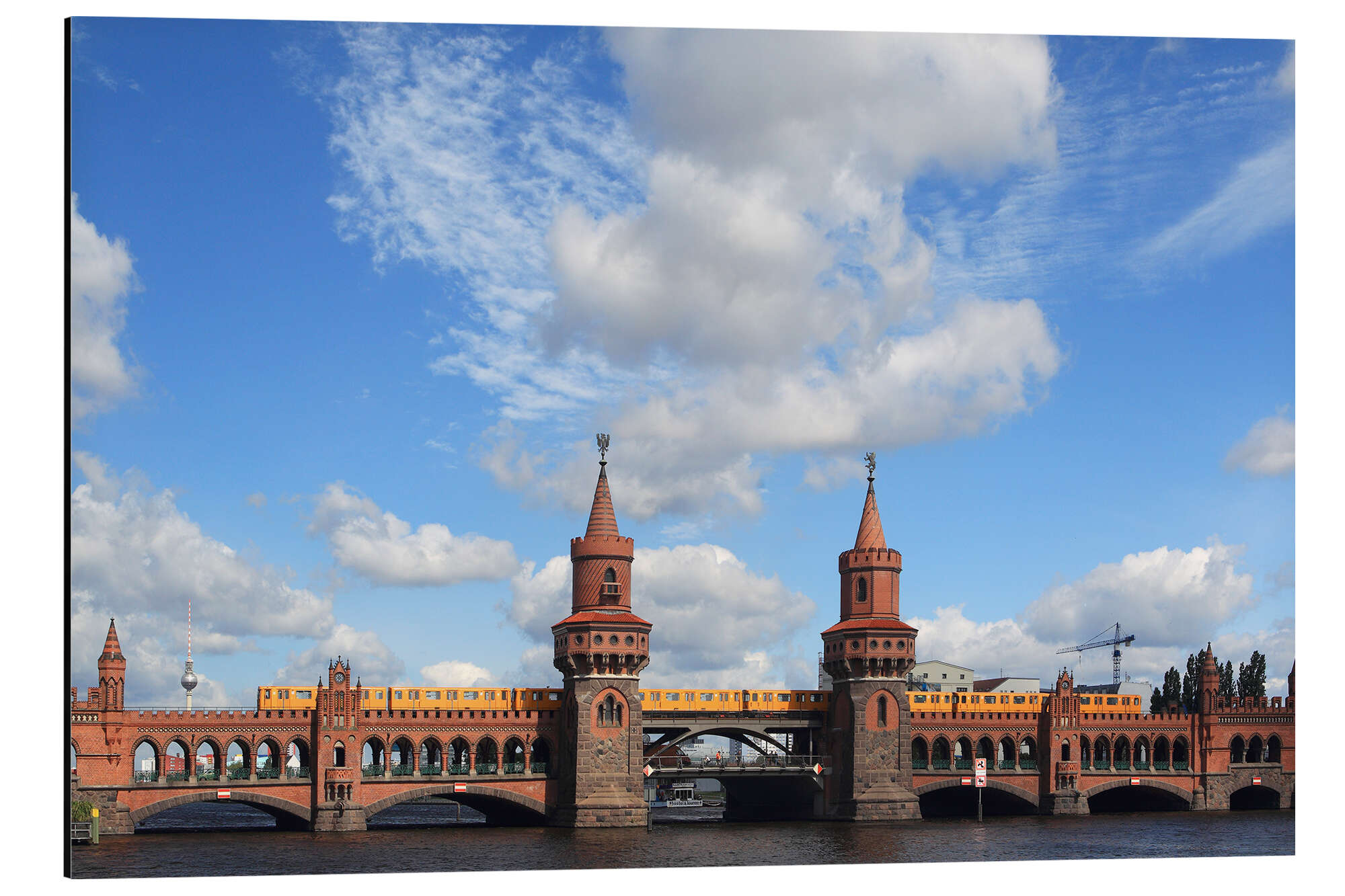 Posterlounge   Wandbilder   Querformat   Frank Herrmann   Magnettafel Oberbaumbrücke Berlin mit U-Bahn und Fernsehturm - typisch Berlin