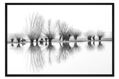Posterlounge   Wandbilder   Schwarz-Weiß   Ingo Gerlach   Gerahmter Kunstdruck Kopfweiden im Spiegelbild des Hochwassers