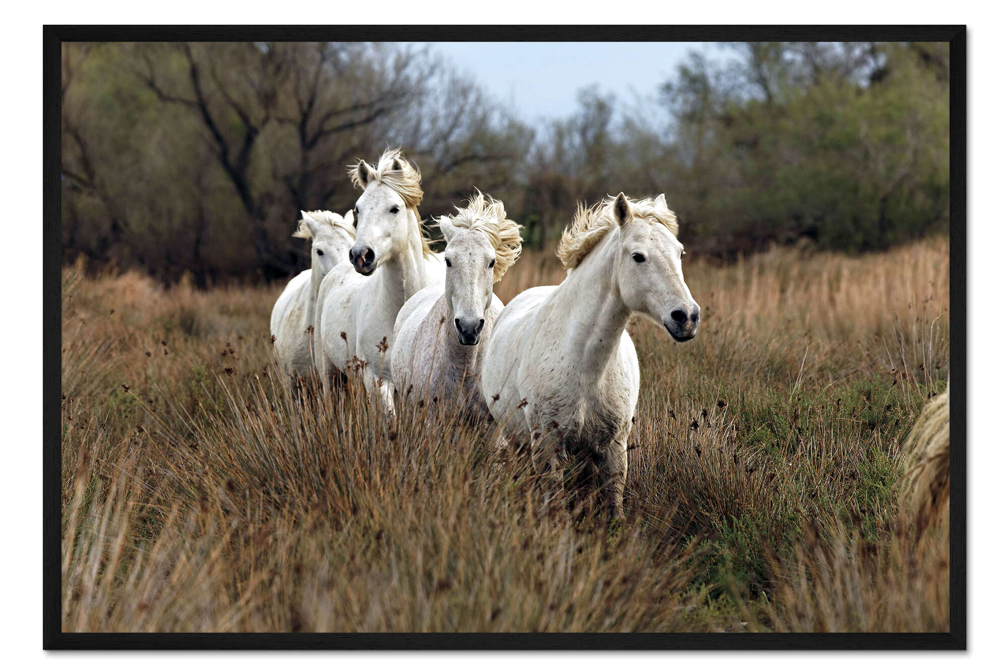 Posterlounge   Wandbilder   Querformat   Adam Jones   Gerahmter Kunstdruck Camarguepferde in der Prärie