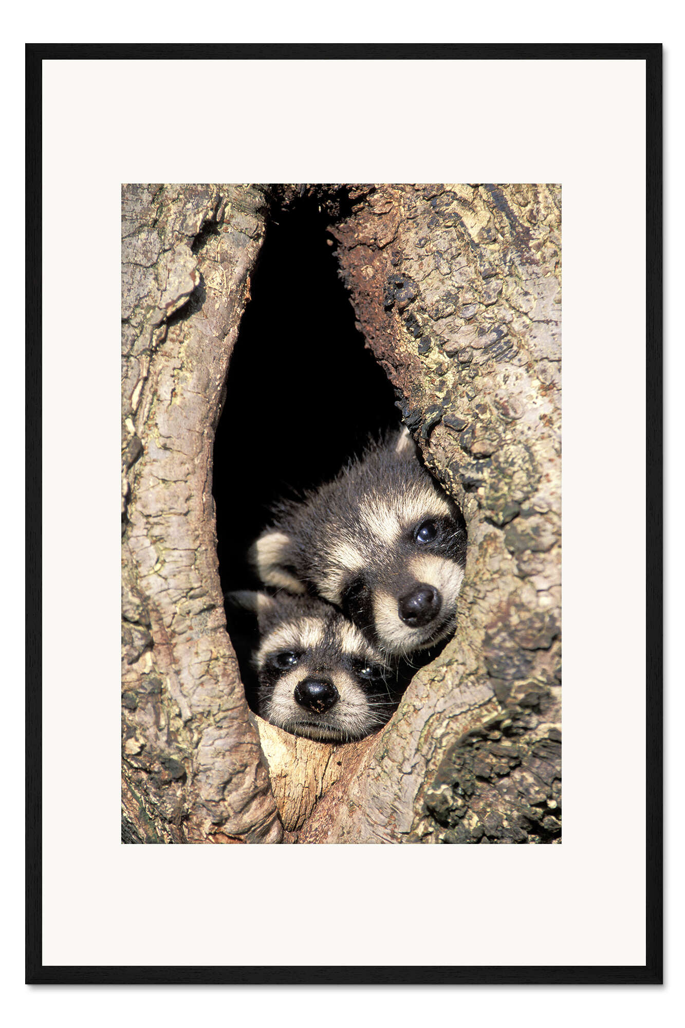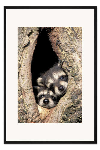 Posterlounge   Wandbilder   Fotografie   Adam Jones   Gerahmter Kunstdruck Baby-Waschbären im Baumhöhle