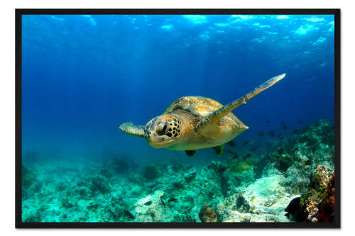 Posterlounge   Wandbilder   Querformat   Paul Kennedy   Gerahmter Kunstdruck Grüne Meeresschildkröte unter Wasser