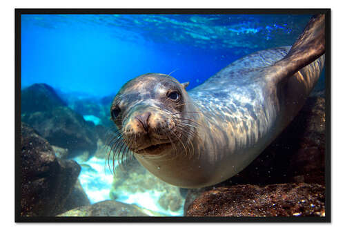 Posterlounge   Wandbilder   Querformat   Paul Kennedy   Gerahmter Kunstdruck Seelöwe Unterwasser Portrait Galapagos-Inseln