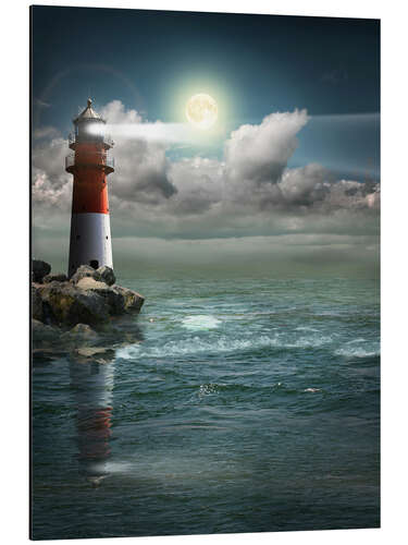 Posterlounge   Wandbilder   Natur   Wellen   Monika Jüngling   Magnettafel Leuchtturm bei Mondschein