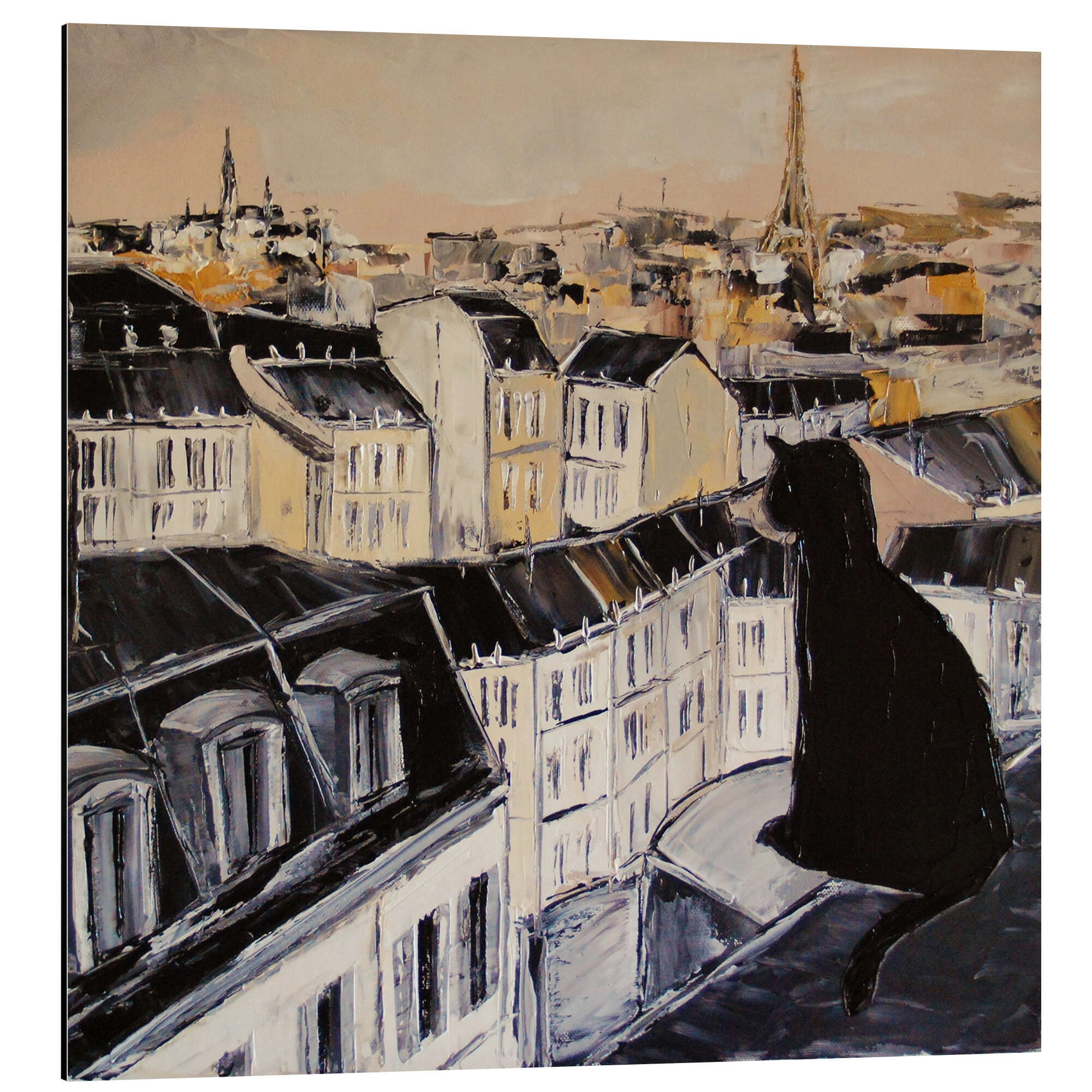 Posterlounge   Wandbilder   Quadrat   JIEL   Magnettafel Schwarze Katze über den Dächern von Paris