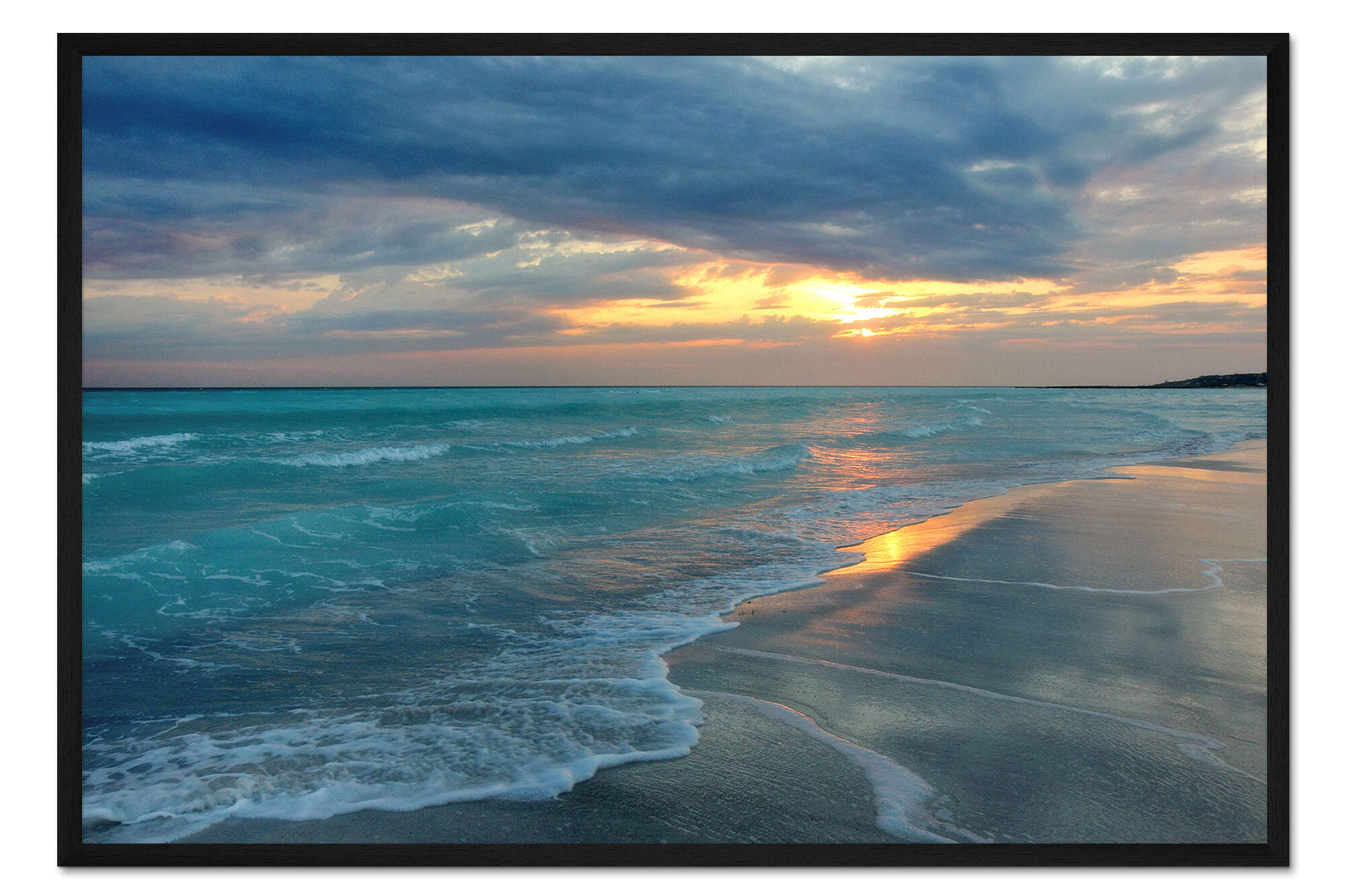 Posterlounge   Wandbilder   Querformat   Filtergrafia   Gerahmter Kunstdruck Sonnenuntergang am Meer