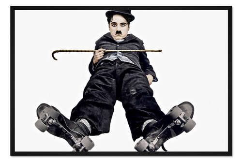 Posterlounge   Wandbilder   Querformat   Gerahmter Kunstdruck Charlie Chaplin mit Rollschuhen