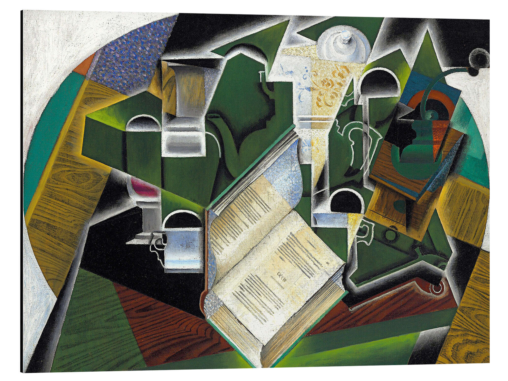 Posterlounge   Wandbilder   Grün   Juan Gris   Magnettafel Stillleben mit Buch, Pfeife und Gläsern
