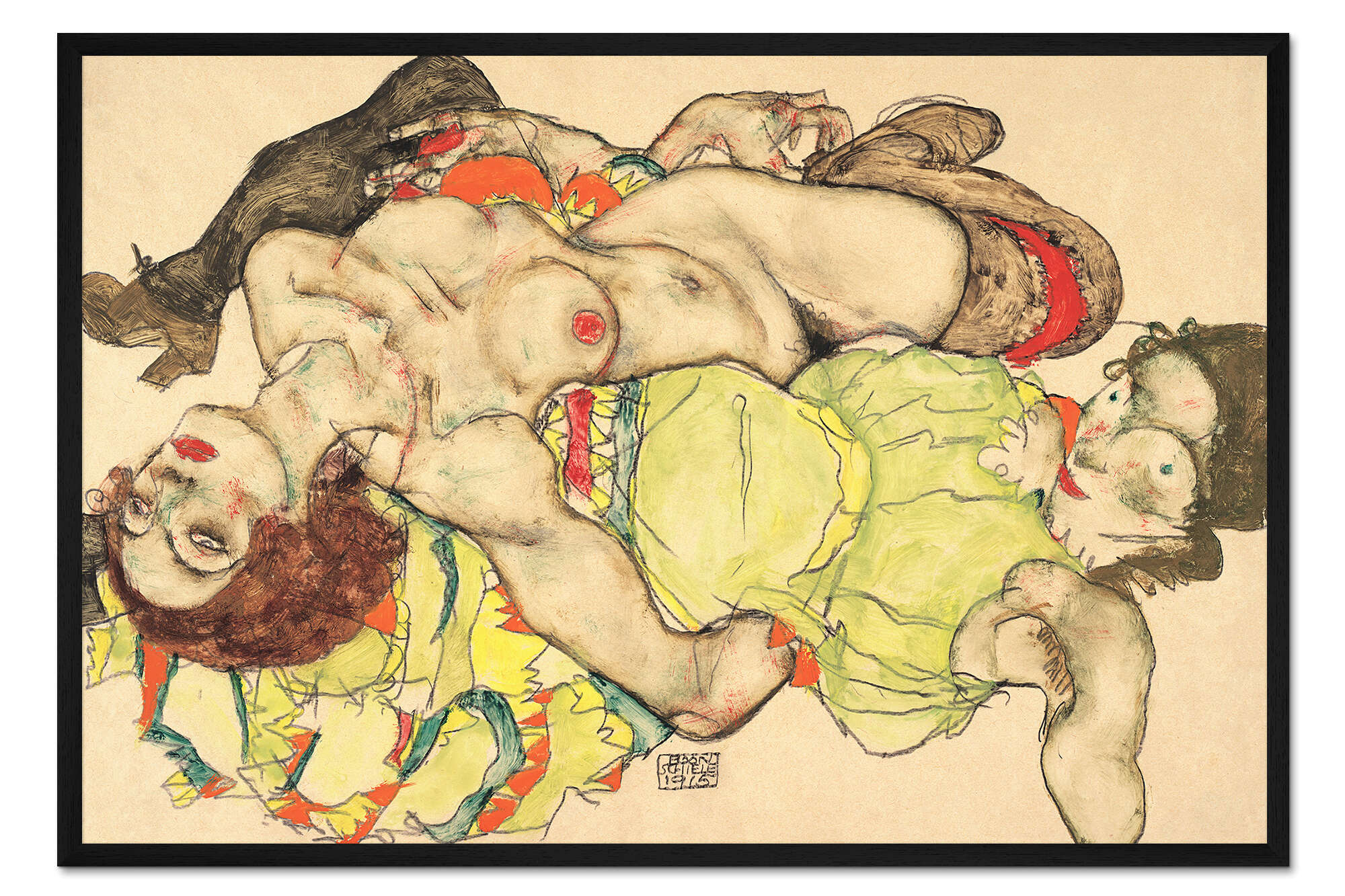 Posterlounge   Wandbilder   Querformat   Egon Schiele   Gerahmter Kunstdruck Weibliches Liebespaar