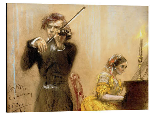 Posterlounge   Wandbilder   Beige   Adolph von Menzel   Magnettafel Clara Schumann und Joseph Joachim musizieren