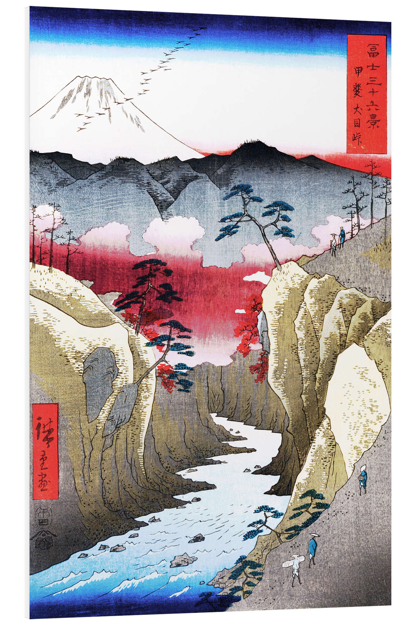 Hartschaumbild Fujisan und Vögel