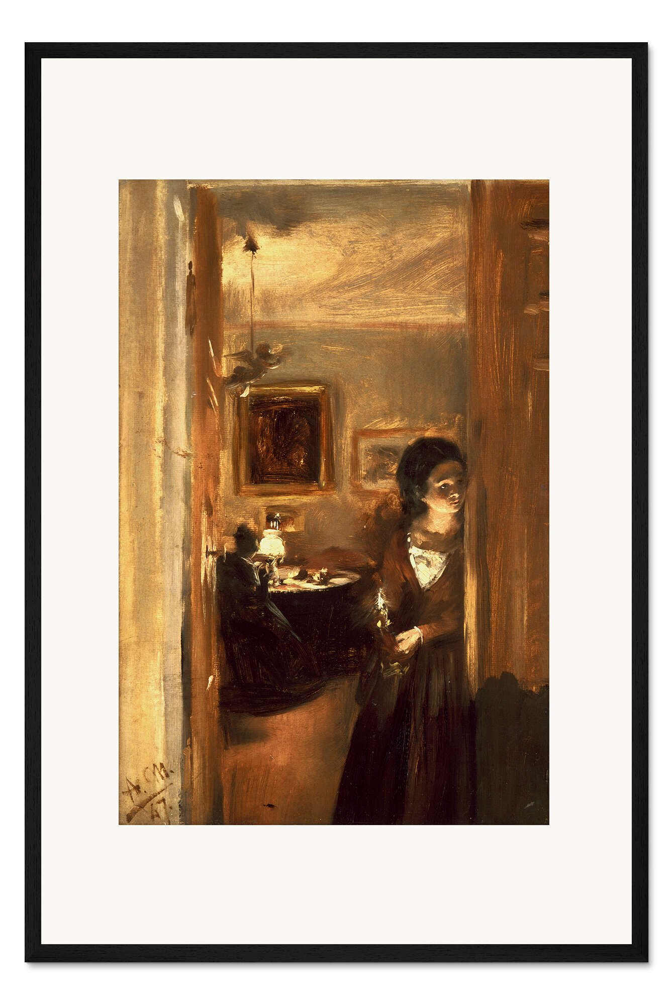 Posterlounge   Künstler   Adolph von Menzel   Gerahmter Kunstdruck Wohnzimmer mit Menzels Schwester