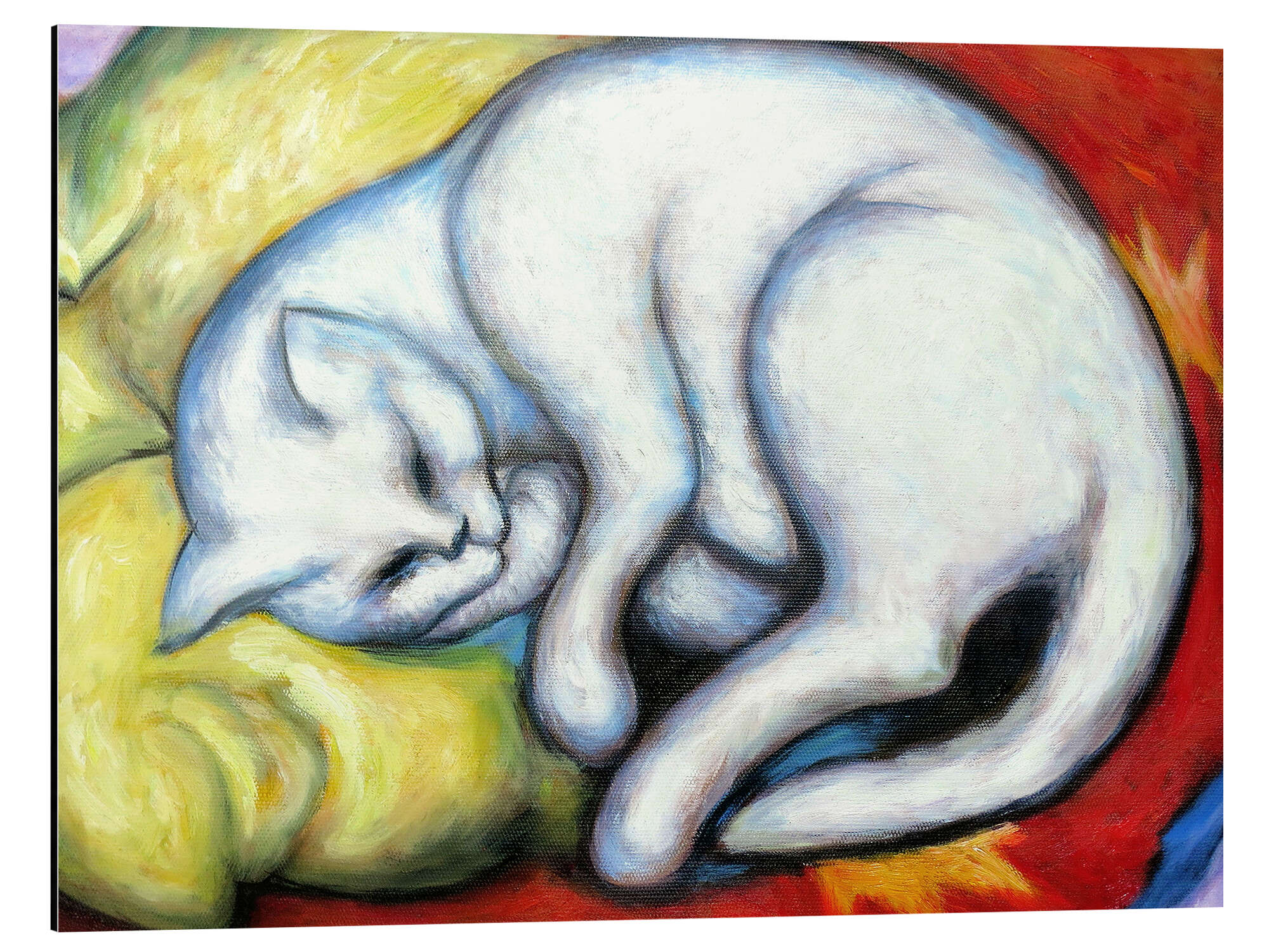 Posterlounge   Wandbilder   Querformat   Franz Marc   Magnettafel Die weiße Katze (Kater auf gelbem Kissen)