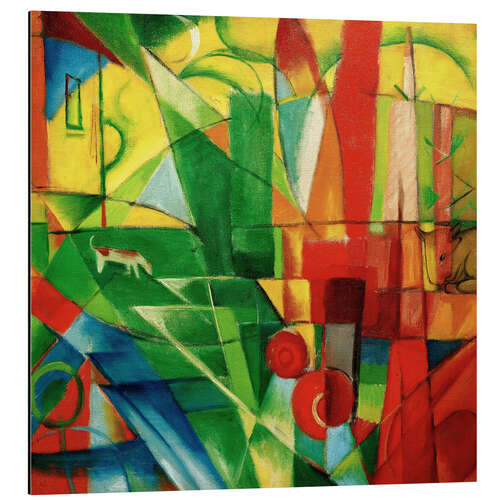 Posterlounge   Wandbilder   Quadrat   Franz Marc   Magnettafel Landschaft mit Haus, Hund und Rind