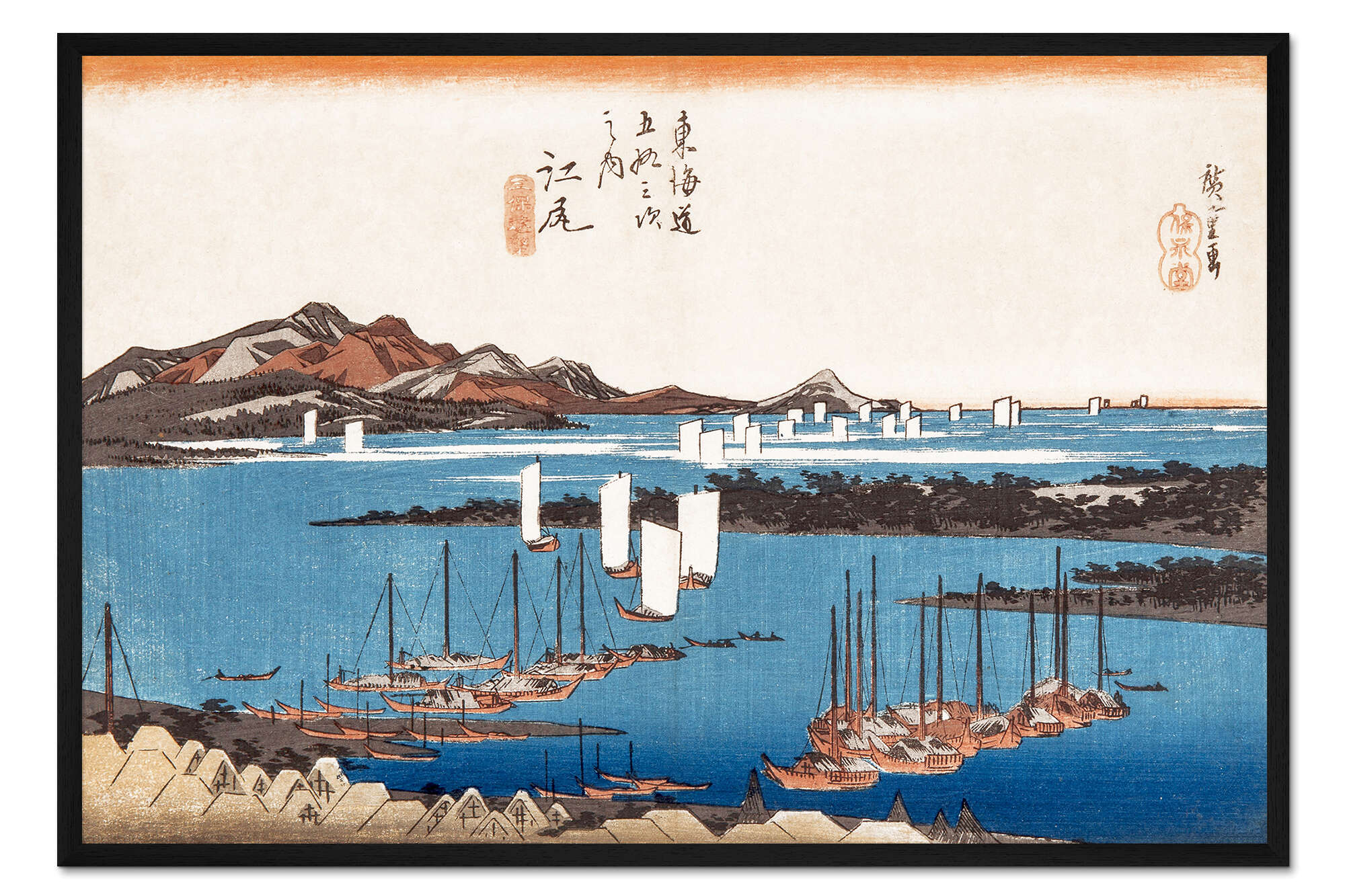 Posterlounge   Wandbilder   Blau   Utagawa Hiroshige   Gerahmter Kunstdruck Ejiri Station 18