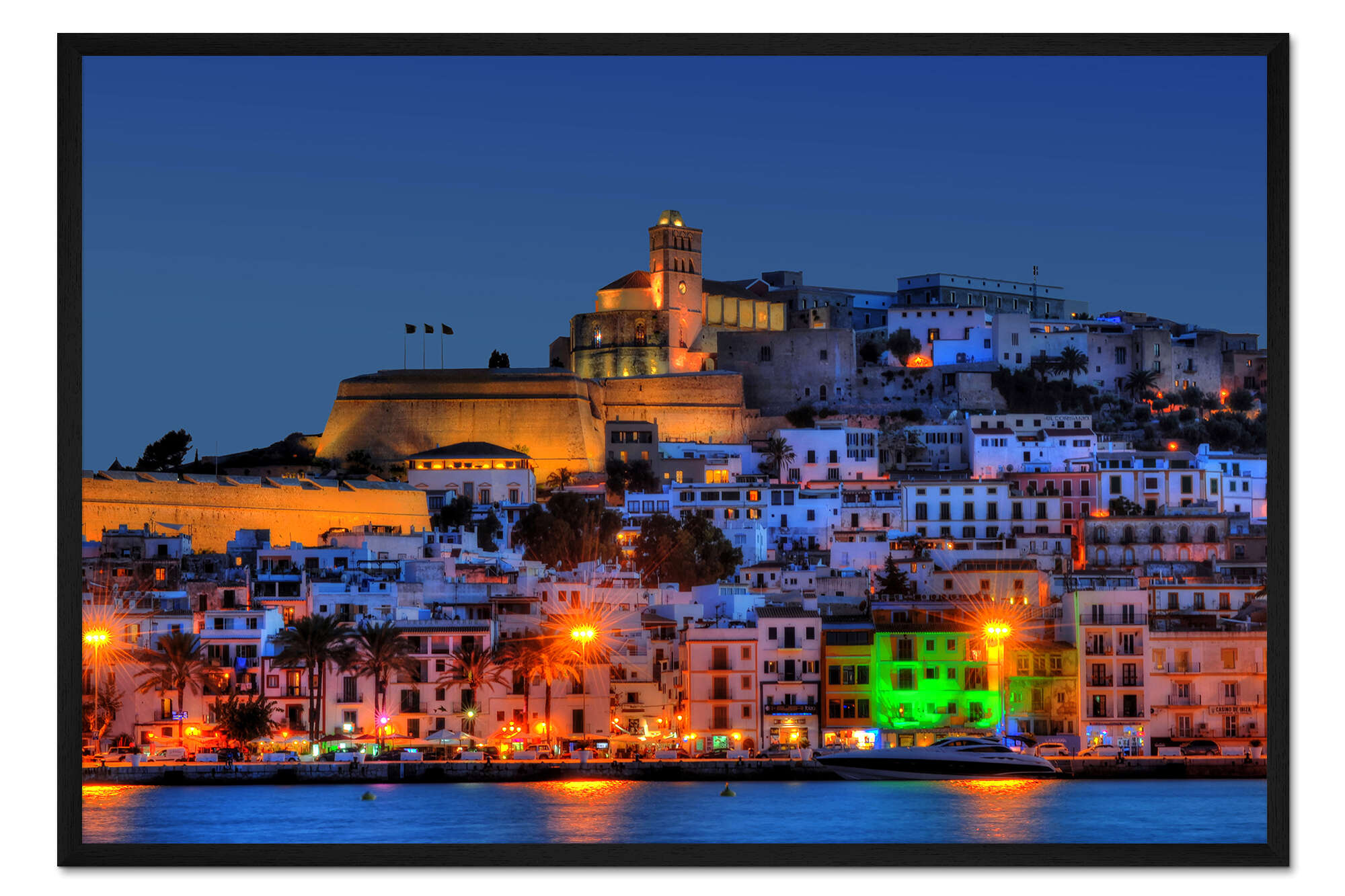Posterlounge   Wandbilder   Städte   HADYPHOTO   Gerahmter Kunstdruck Altstadt von Ibiza bei Nacht
