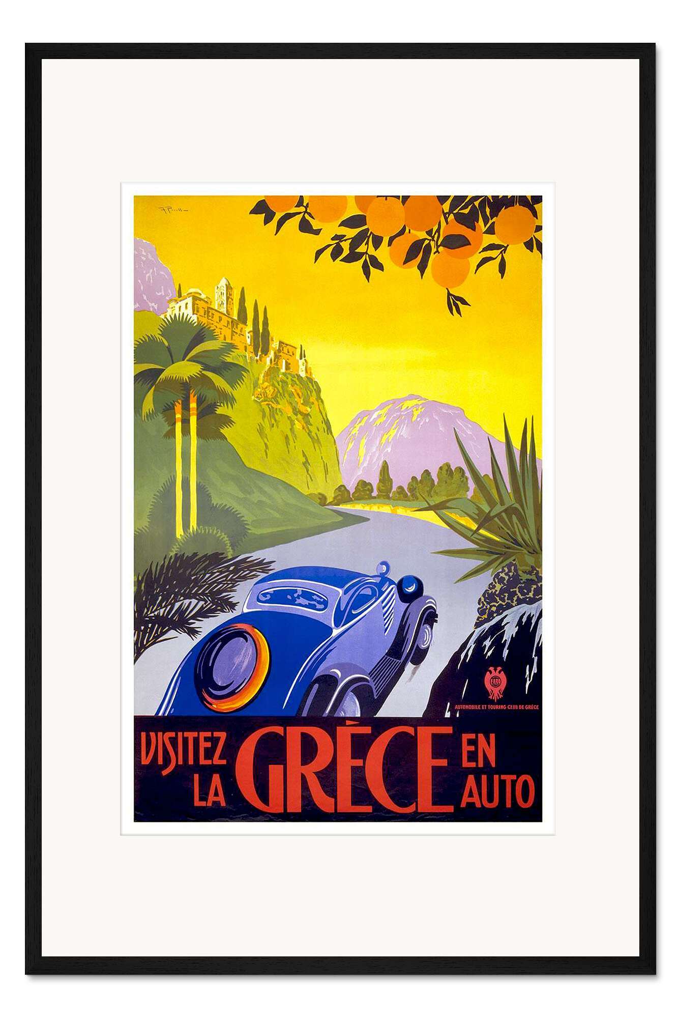 Posterlounge   Wandbilder   Illustration   Vintage Travel Collection   Gerahmter Kunstdruck Besuchen Sie Griechenland mit dem Auto