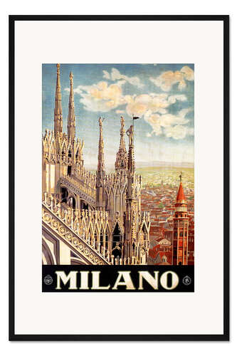 Posterlounge   Wandbilder   Illustration   Vintage Travel Collection   Gerahmter Kunstdruck Italien - Mailand