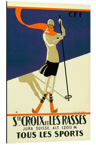 Posterlounge   Wandbilder   Illustration   Vintage Ski Collection   Magnettafel Skifahren in Sainte-Croix