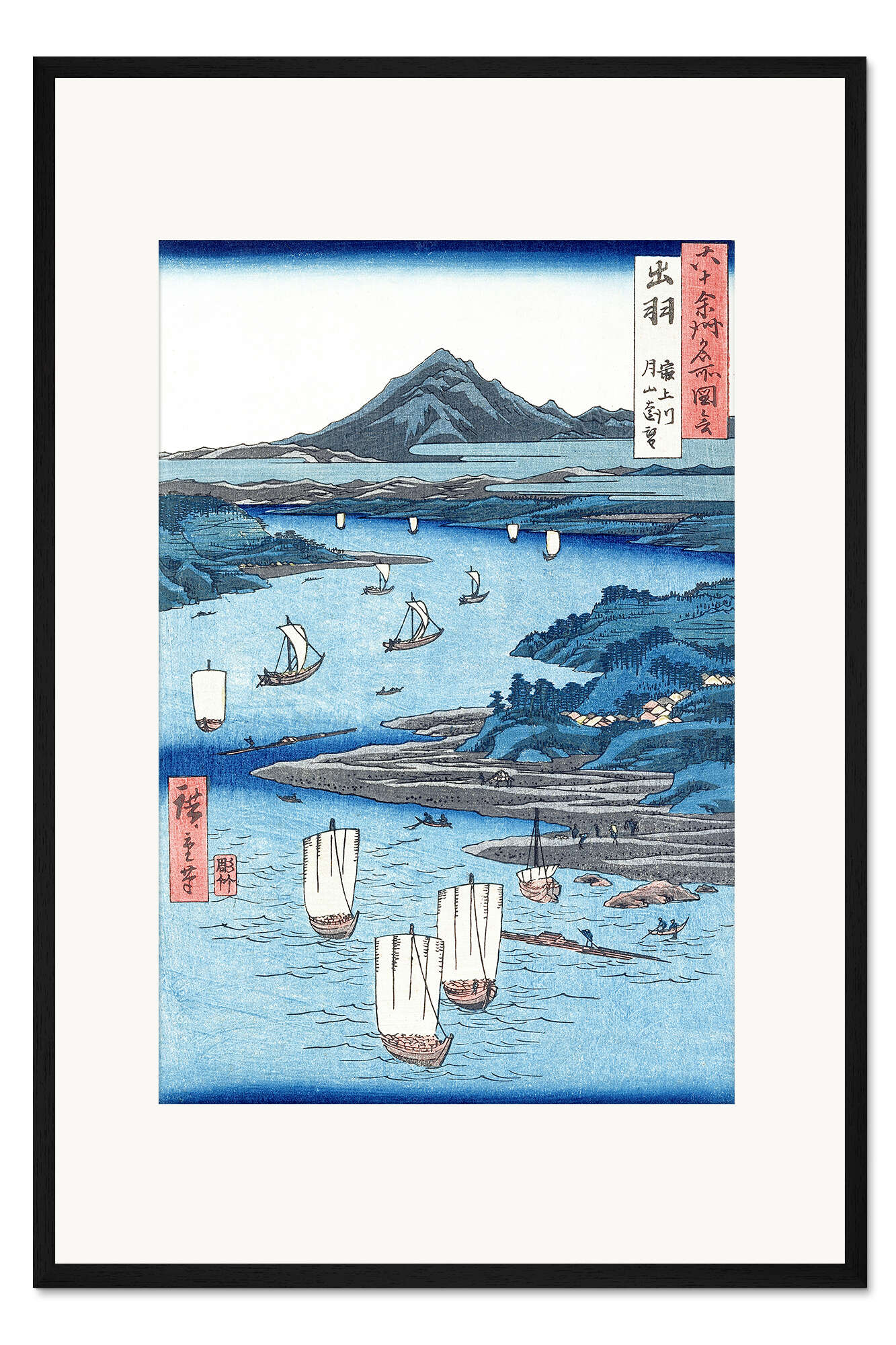Posterlounge   Wandbilder   Blau   Utagawa Hiroshige   Gerahmter Kunstdruck Magami Fluss und Tsukiyama, Provinz Dewa
