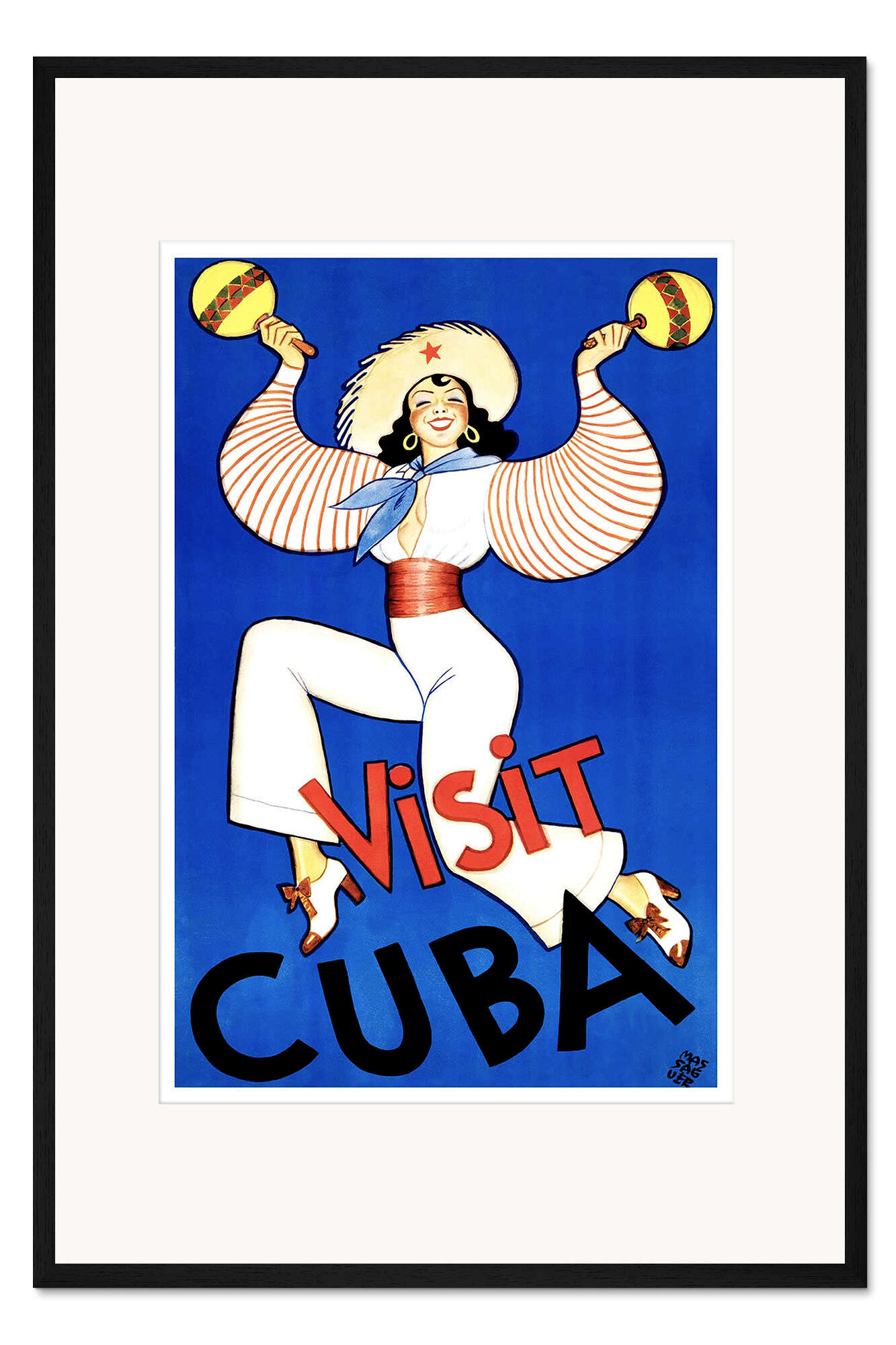 Posterlounge   Wandbilder   Illustration   Vintage Travel Collection   Gerahmter Kunstdruck Besuchen Sie Kuba Maracas