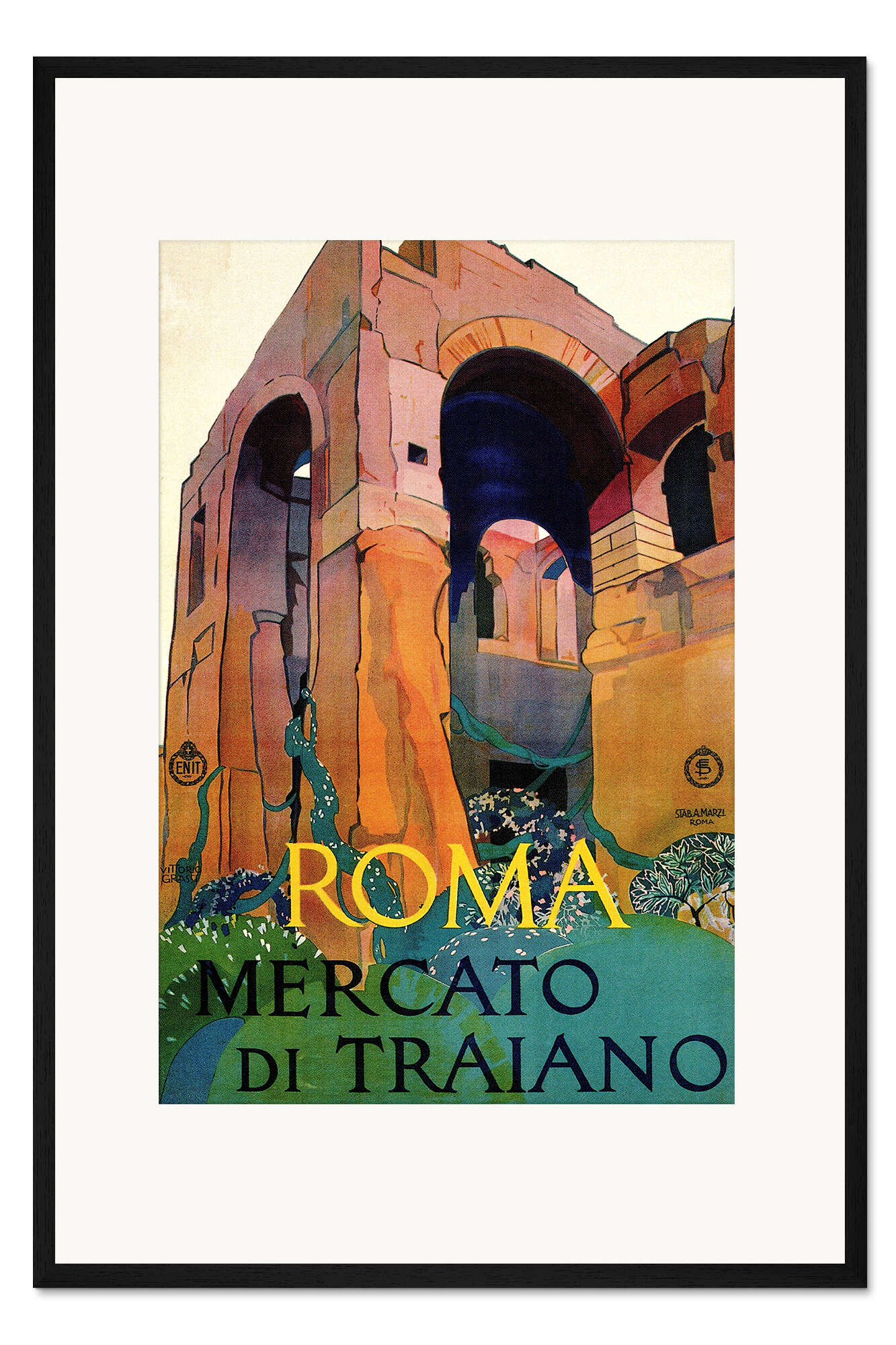 Posterlounge   Wandbilder   Illustration   Vintage Travel Collection   Gerahmter Kunstdruck Italien - Rom, Mercato Di Traiano