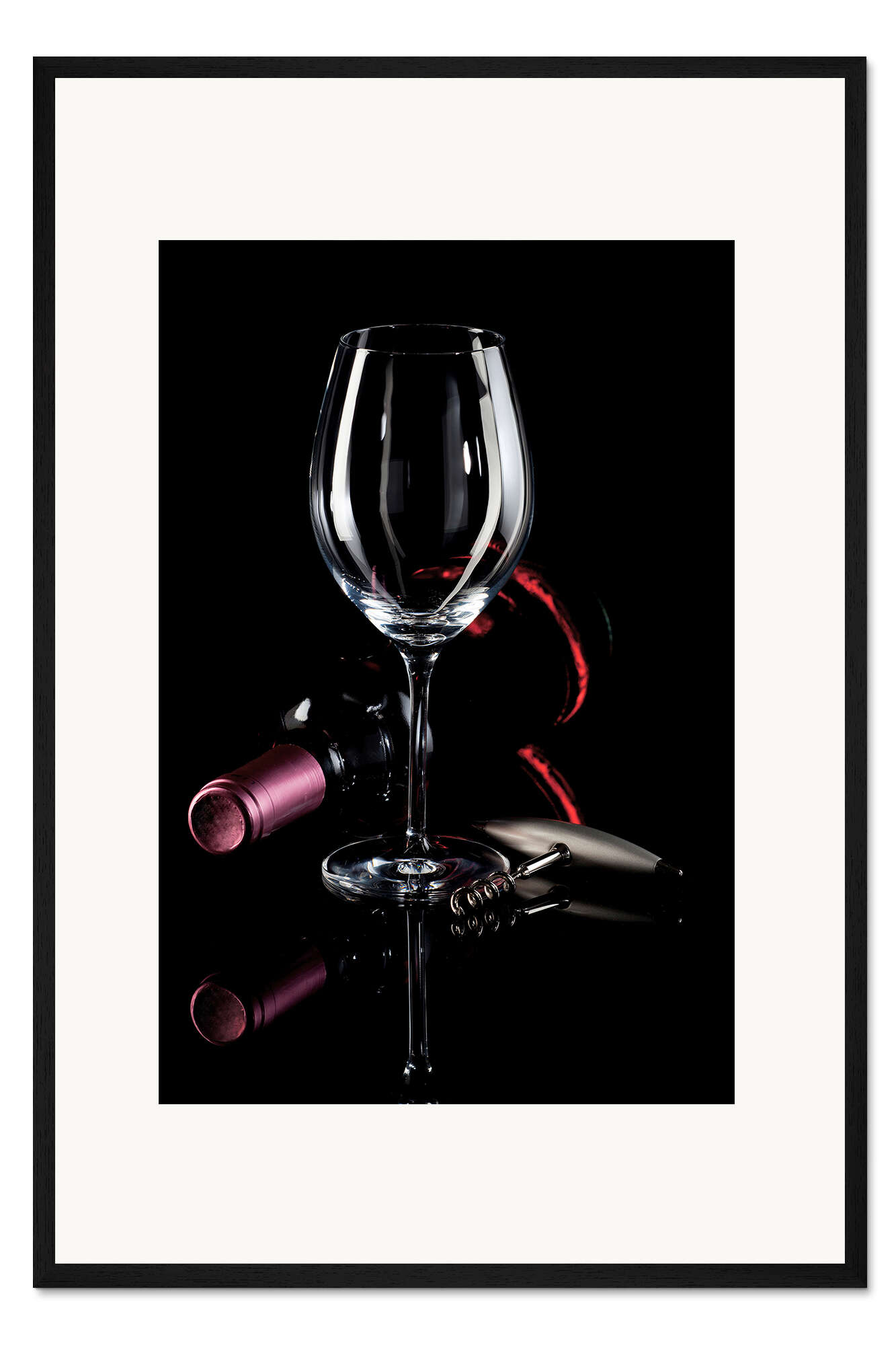 Posterlounge   Wandbilder   Schwarz   Thomas Klee   Gerahmter Kunstdruck Wein, Glas und Korkenzieher III