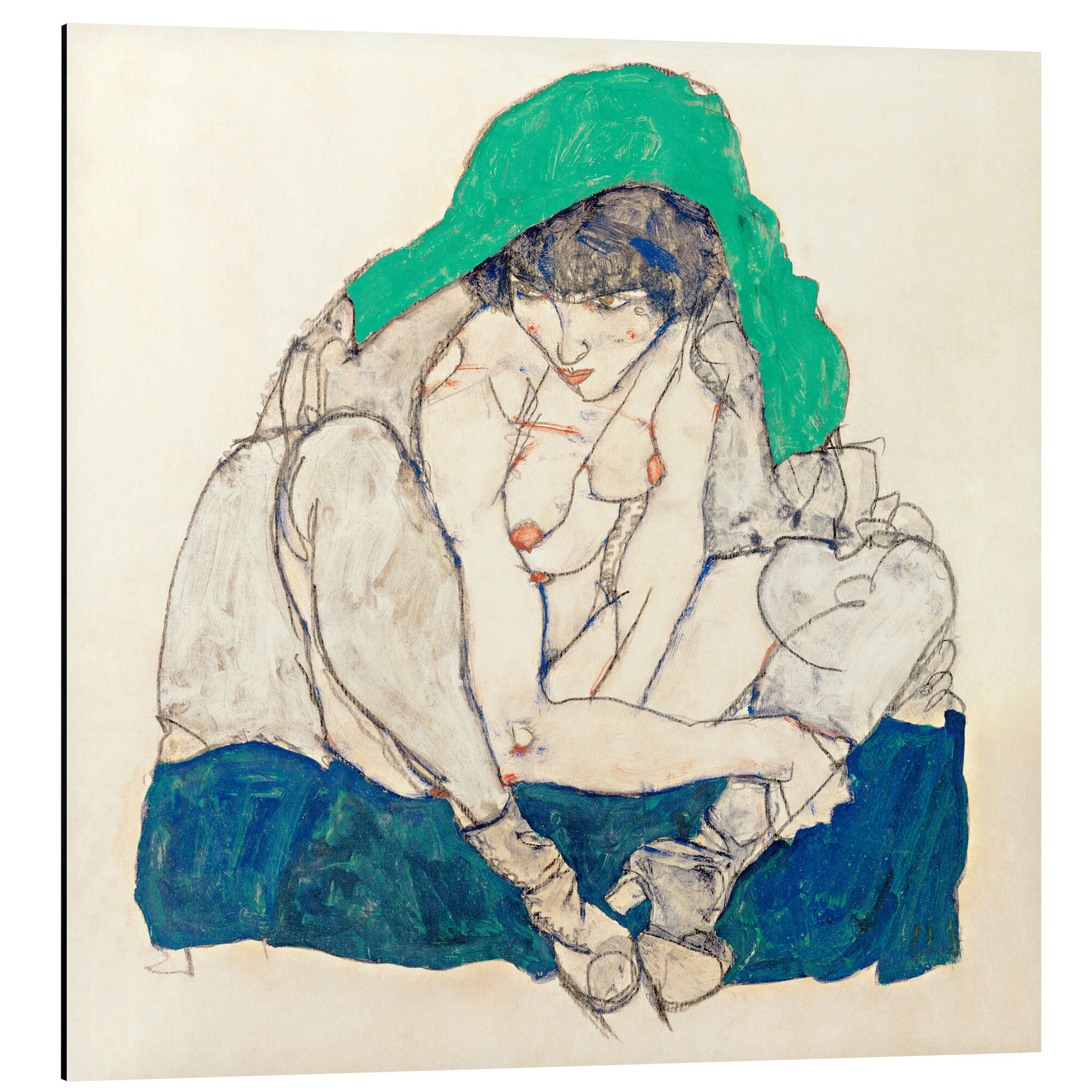 Posterlounge   Wandbilder   Quadrat   Egon Schiele   Magnettafel Kauernde mit grünem Kopftuch
