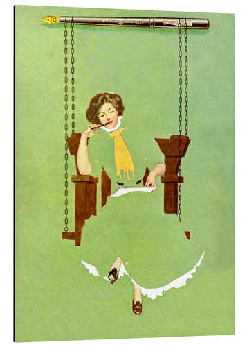 Dame mit Federhalter im Sommerkleid