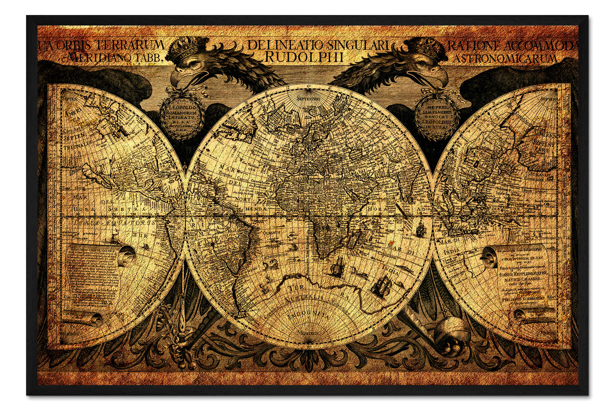 Posterlounge   Wandbilder   Querformat   Michaels Antike Weltkarten   Gerahmter Kunstdruck Welt 1630