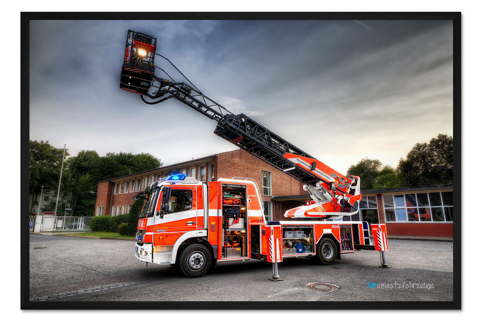Posterlounge   Wandbilder   Fahrzeuge   Feuerwehr   Markus Will   Gerahmter Kunstdruck Feuerwehr-Teleskopmastfahrzeug