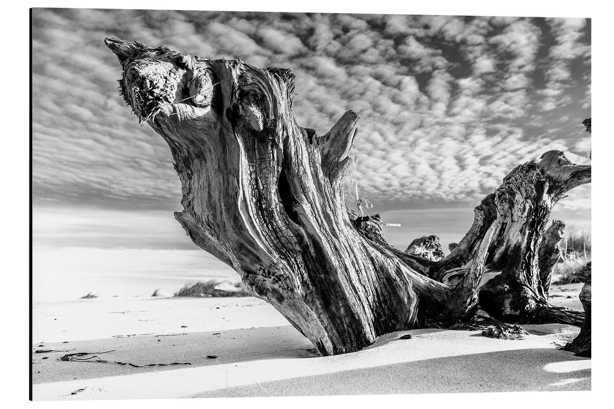 Posterlounge   Wandbilder   Querformat   Sascha Kilmer   Magnettafel Ostseestrand mit alter Baumwurzel (schwarz weiß)
