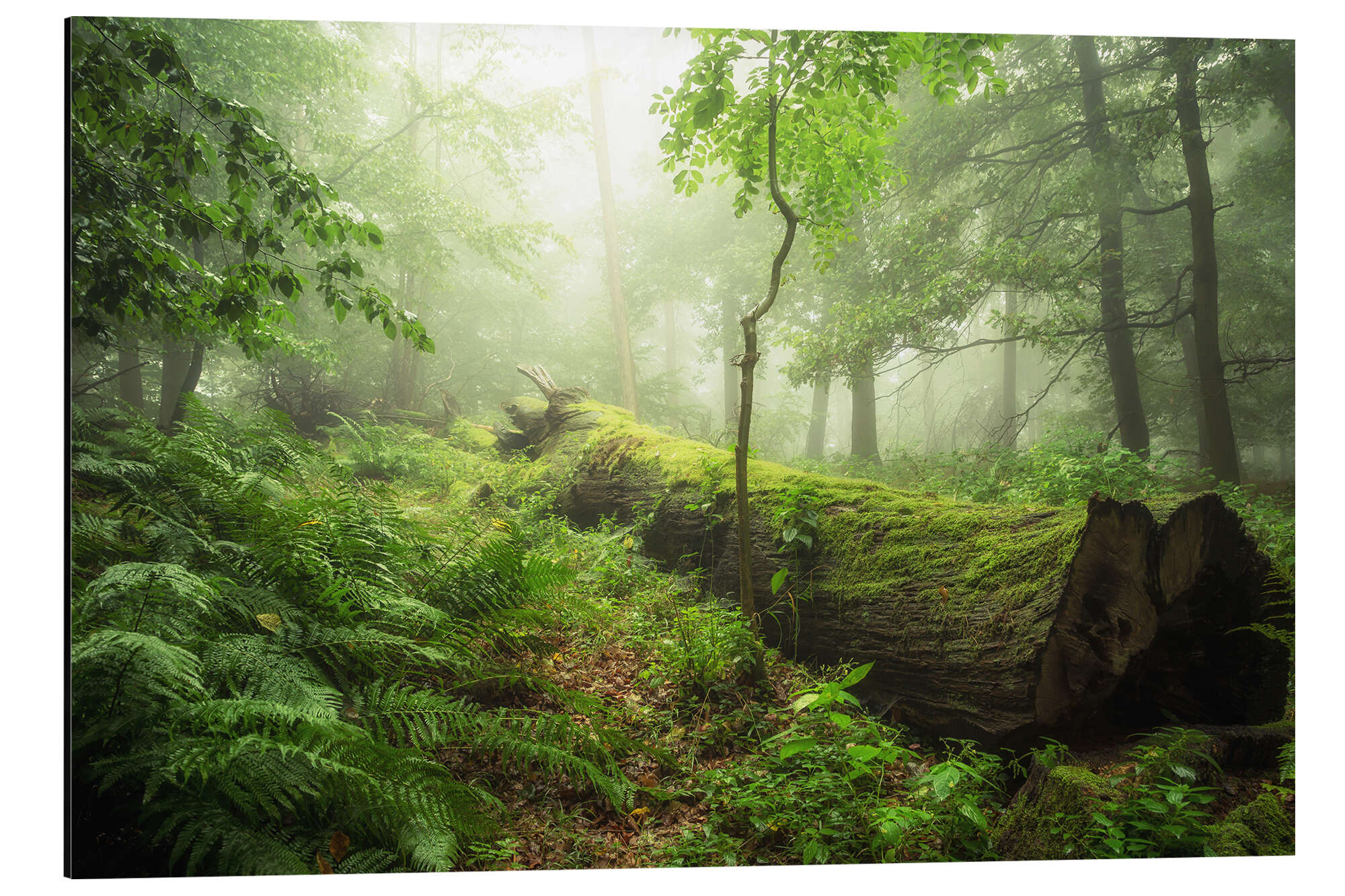 Leuchtend grüner Wald mit Sonne im sagenhaften Harz