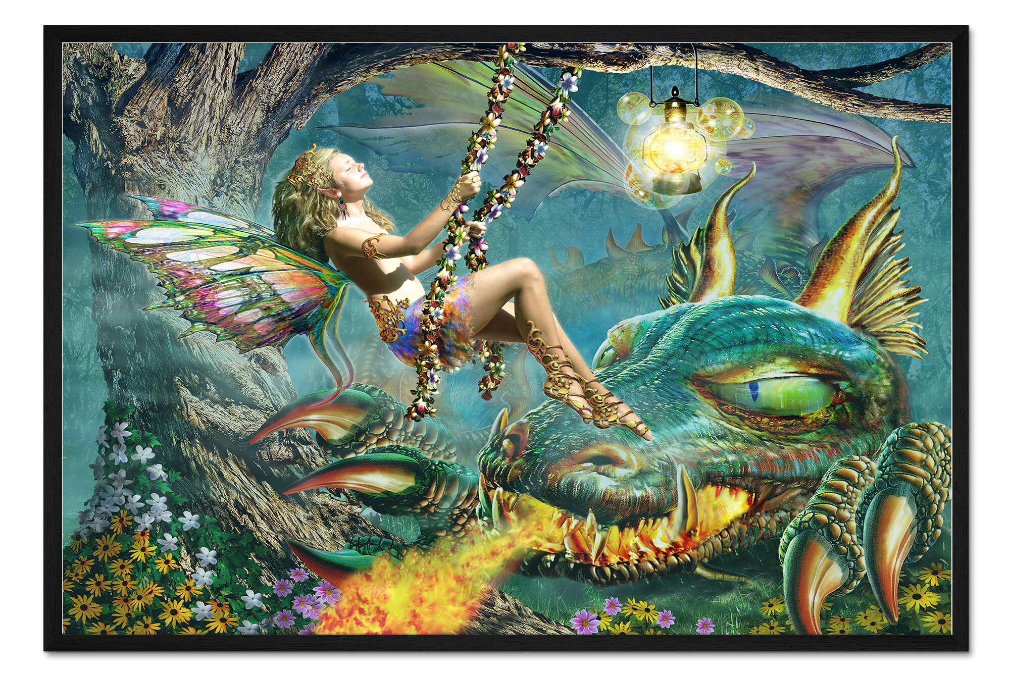 Posterlounge   Wandbilder   Illustration   Adrian Chesterman   Gerahmter Kunstdruck Drache und Feenschaukel