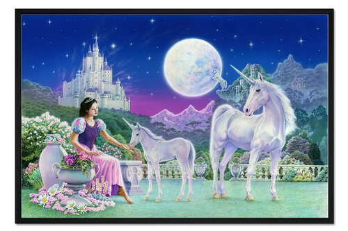 Posterlounge   Wandbilder   Querformat   Robin Koni   Gerahmter Kunstdruck Die Einhornprinzessin füttert das Fohlen